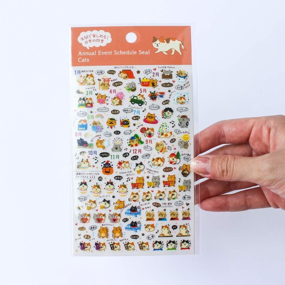 金箔 スケジュールシール【年間/ねこ】かわいい 手帳デコ TM01099