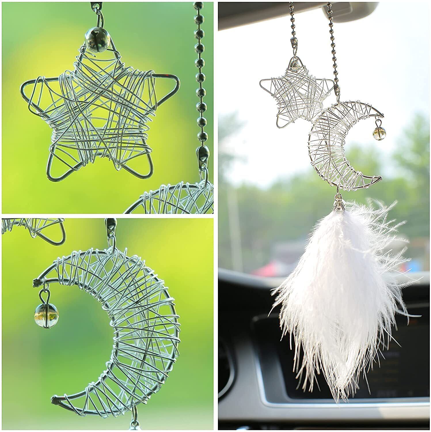車ペンダント ルームミラー アクセサリー スタームーンドリームキャッチャー 車内 アクセサリー 車 ドレスアップ 車 飾り 車用品 カーアクセサリー 車内 バックミラー 車内装飾 羽飾り 風鈴 贈り物 (グレー)