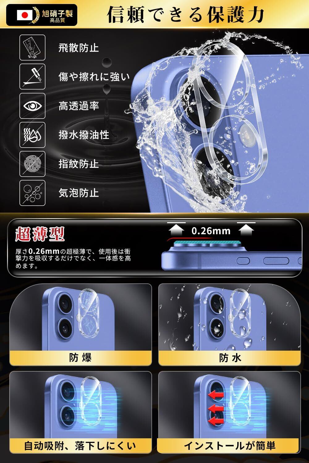 Boiyiklonn iPhone16 ガラスフィルム (2枚)+ iPhone 16 カメラフィルム(2枚) 【日本旭硝子製/ガイド枠付き】iPhone16 保護フィルム 硬度9H 耐衝撃 高透過率 自動吸着 気泡防止 飛散防止 撥水撥油 アイフォン 16 フィルム + アイフォン 16 カメラ保護フィルム