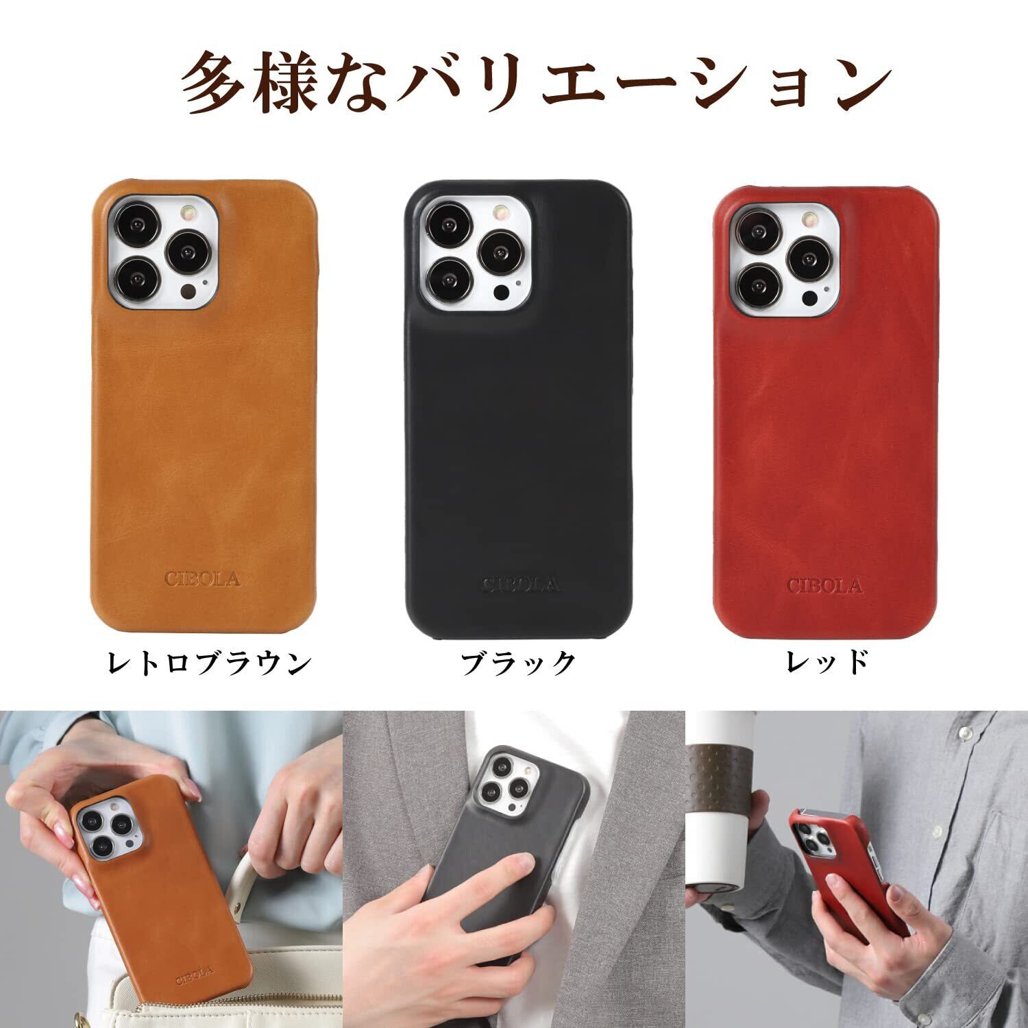 【新春セール】[ CIBOLA ] 高級牛革 iPhone13 mini 対応 ケース 本革 背面型 アイフォン13 ミニ 用 バンパーケース 革 軽量 薄い 耐衝撃 レンズ保護 擦り傷防止 アイホン13ミニ 向け 携帯ケース マグネット無し ボタン丸出し, (ブラック)