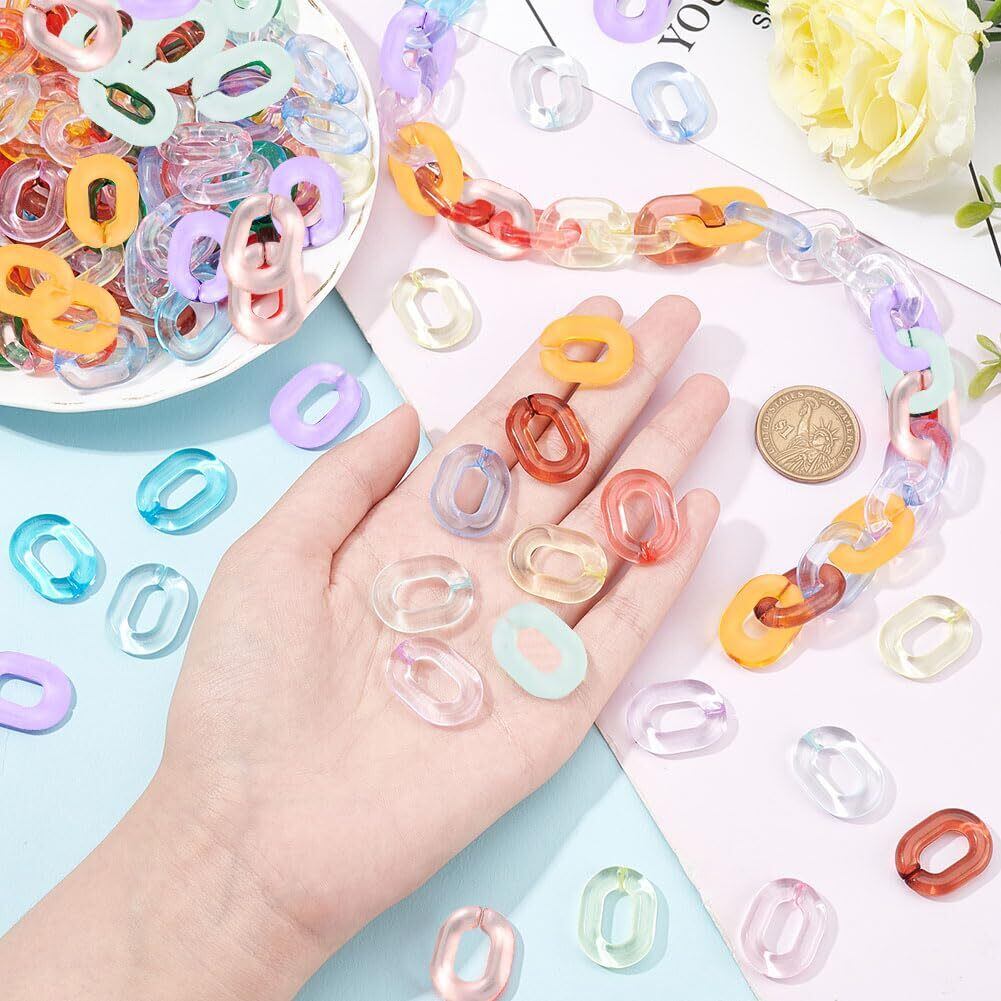 適切なサイズ:サイズは幅約18mm、長さ約24mm、厚さ約5mm、内径約13x7mmです。このサイズのアクリルリングは、小さいものよりも強度があります。より多くの用途を持つことができます。複数接続して欲しいチェーンを作ることができます。例えば携帯ケースの上の装飾チェーン、イヤリング、眼鏡チェーン。