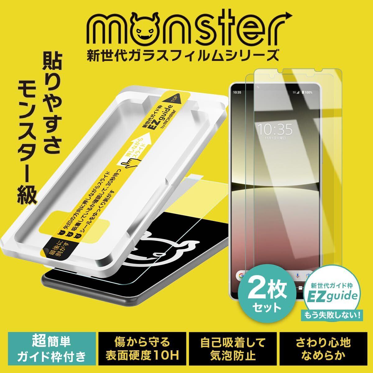 モンスターフィルム Xperia 5 IV 用 | 強化 ガラスフィルム 透明 クリア 保護 フィルム 硬度10H | エクスペリア ファイブ マーク フォー SO-54C SOG09 XQ-CQ44 対応 ベルモンド ガイド枠付き 2枚 セット B0783