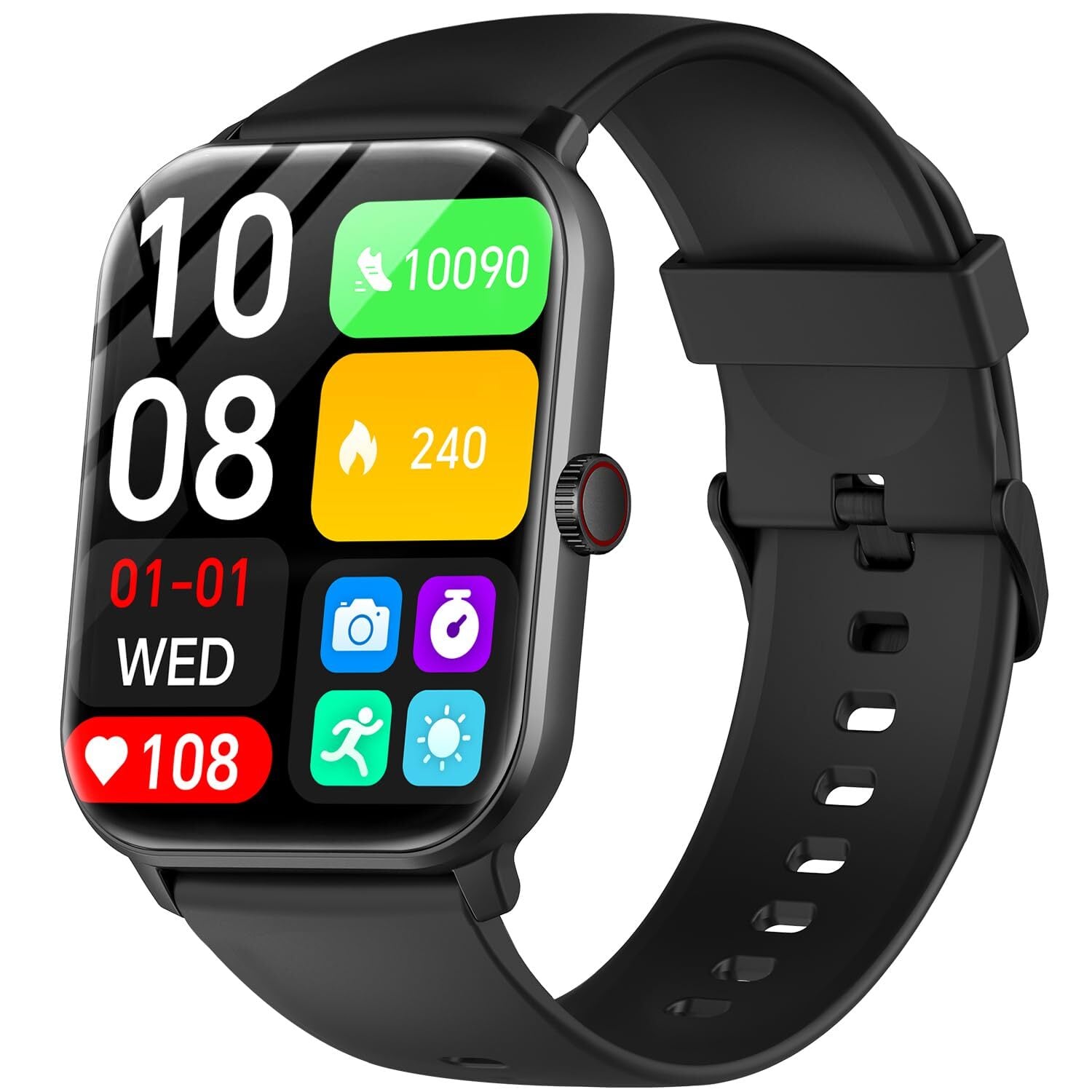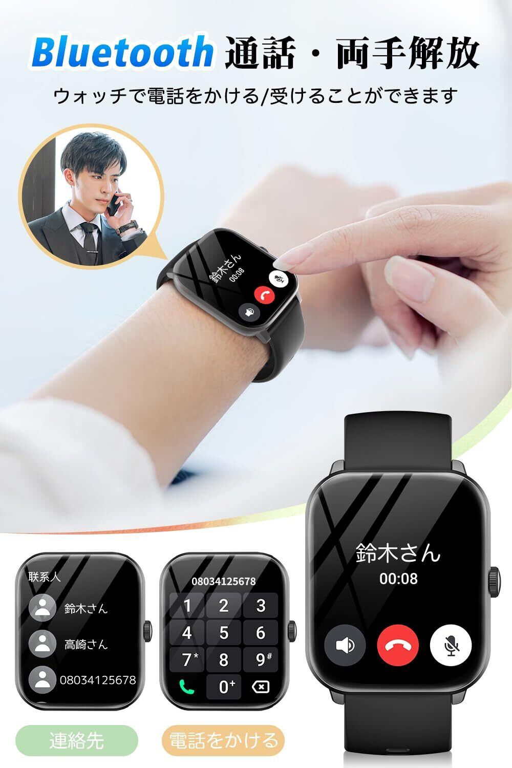 【新春セール】スマートウォッチ【2025改良最新型】Bluetooth通話機能付き 音楽再生 電卓機能 活動量計 iPhone対応&アンドロイド対応 SMS/Line通知 多機能スマートウォッチ 100種類運動モード 生活防水 メッセージ通知 腕時計 天気予報 スポーツウォッチ レディース メンズ 多種類文字盤 Smart Watch プレゼント (ブラック)