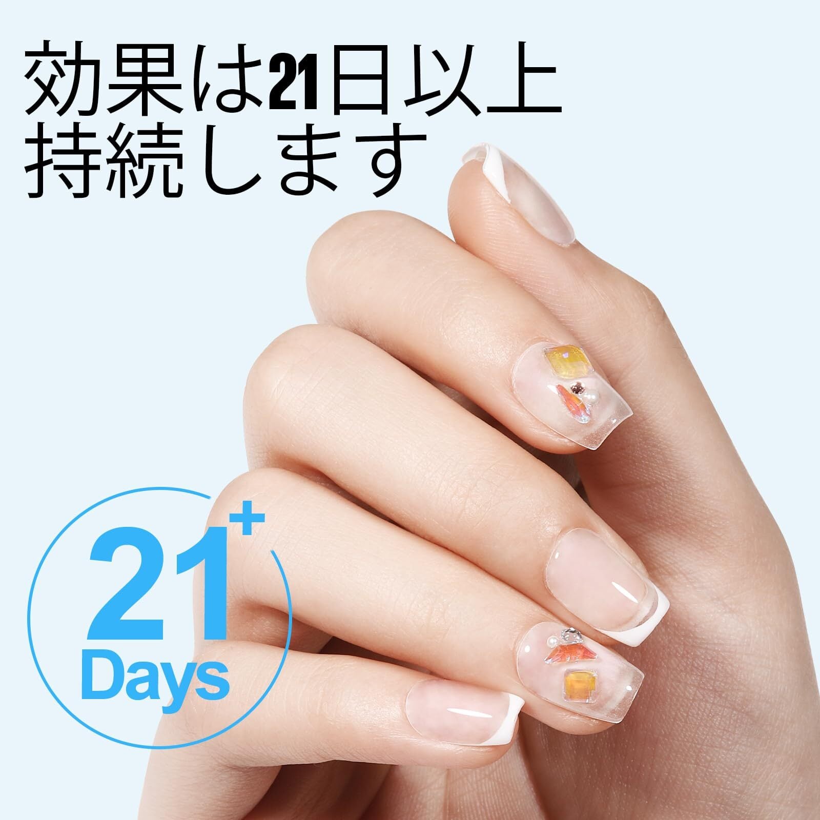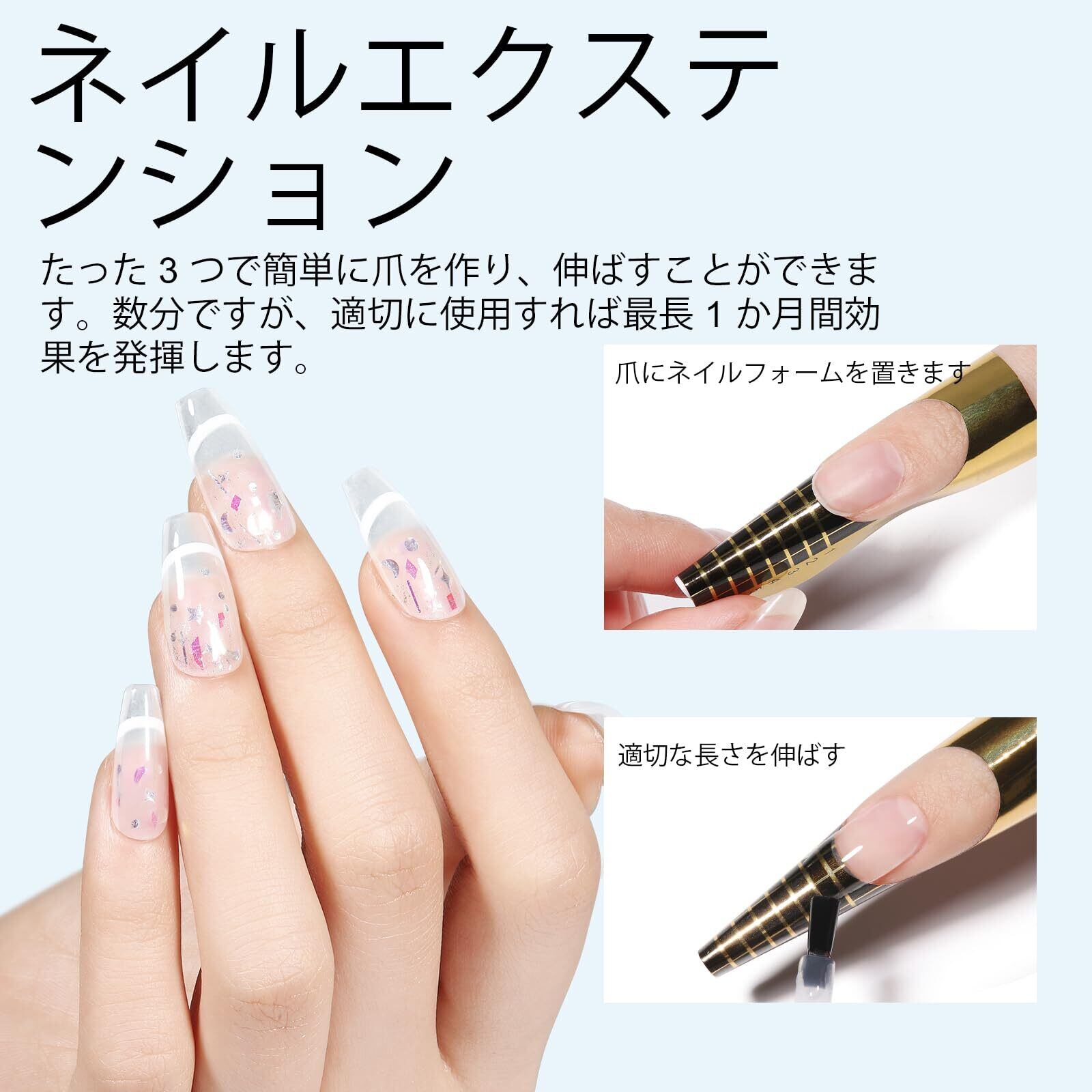 耐久性:このジェルビルダーはベースレイヤーとして使用でき、爪の自然な形を保護する強力な保護層を形成します。エクステンションジェルとして、爪を希望の長さと形に簡単に伸ばすことができます。泡立たず、落ちにくく、正しく使えば最大21日間持続します。
