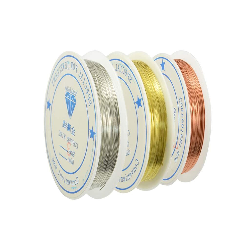 YFFSFDC 銅線 線径0.5mm アクセサリーワイヤー 3巻入 クラフトゴールド/シルバー/ワ柏F アートワイヤー アクセサリーパーツ DIY 手作り 手芸用ワイヤー (0.5mm)
