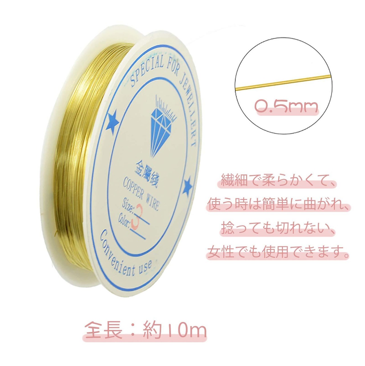 ハンドメイドアクセサリー、ワイヤークラフト、ブレスレット、ネックレス、イヤーワイヤ、ビーズチェーンなどの宝石類にも使用できます。