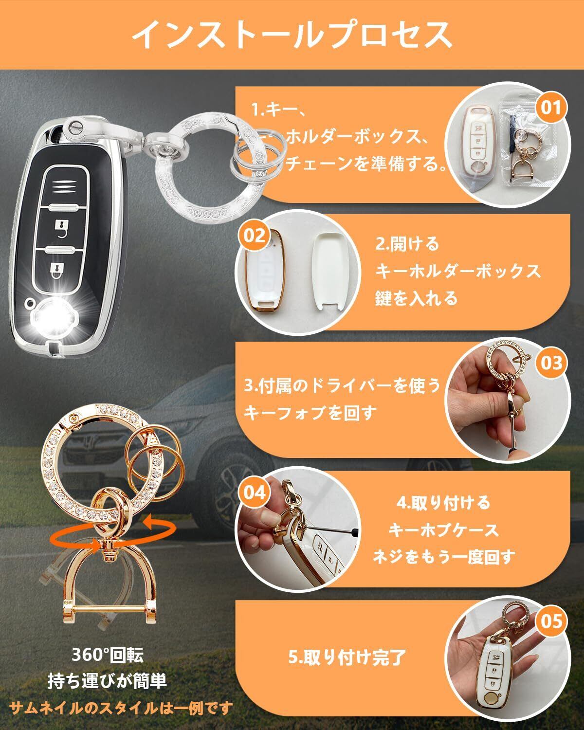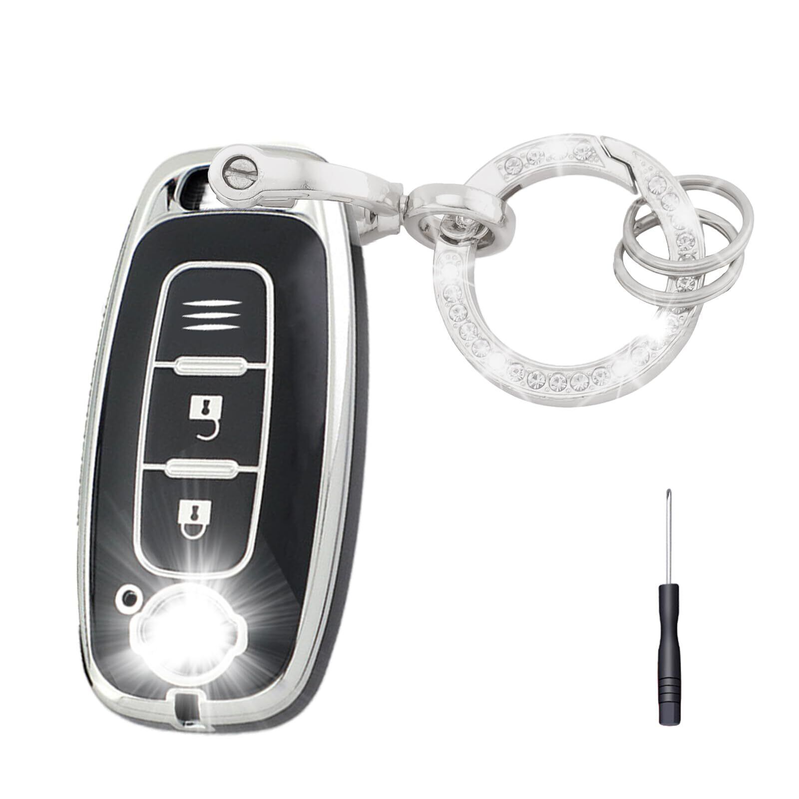 パッケージ内容:パッケージには、TPU キーカバー 1個、輝くカーキーホルダー 1個、小型キーリング 2個、そして取り付けに便利なドライバーが含まれています。日常の使用をより便利かつスタイリッシュにします。