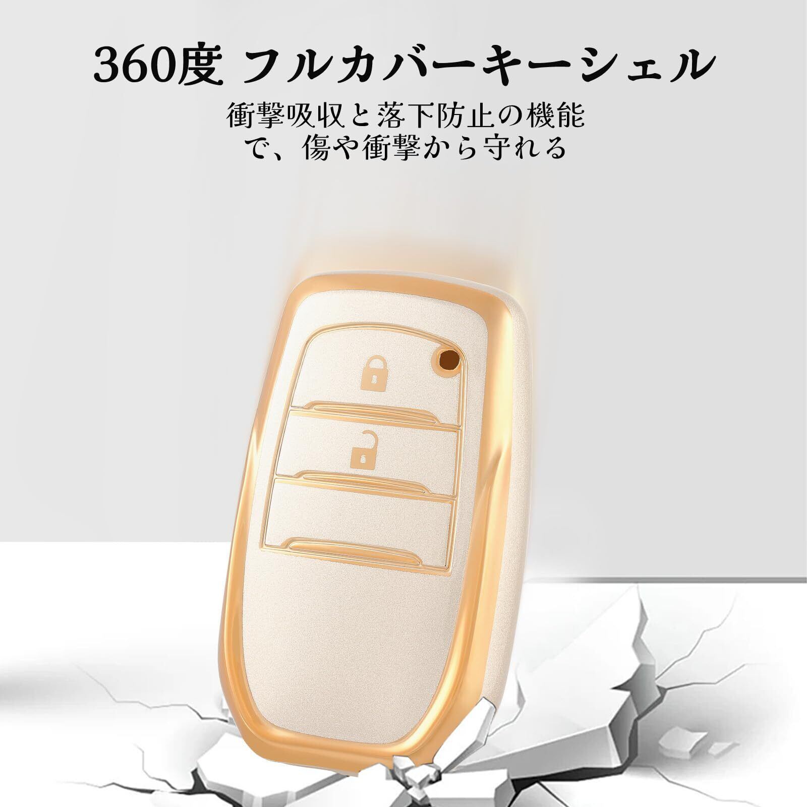 【新着商品】OFF WE GO キーシェル TPU 車のキーカバー キーケース 互換新型トヨタプリウス ハリアー カローラ カローラスポーツ GRヤリス など ロードスター 新型トヨタ互換スマートキーケース,2ボタン,ゴールド