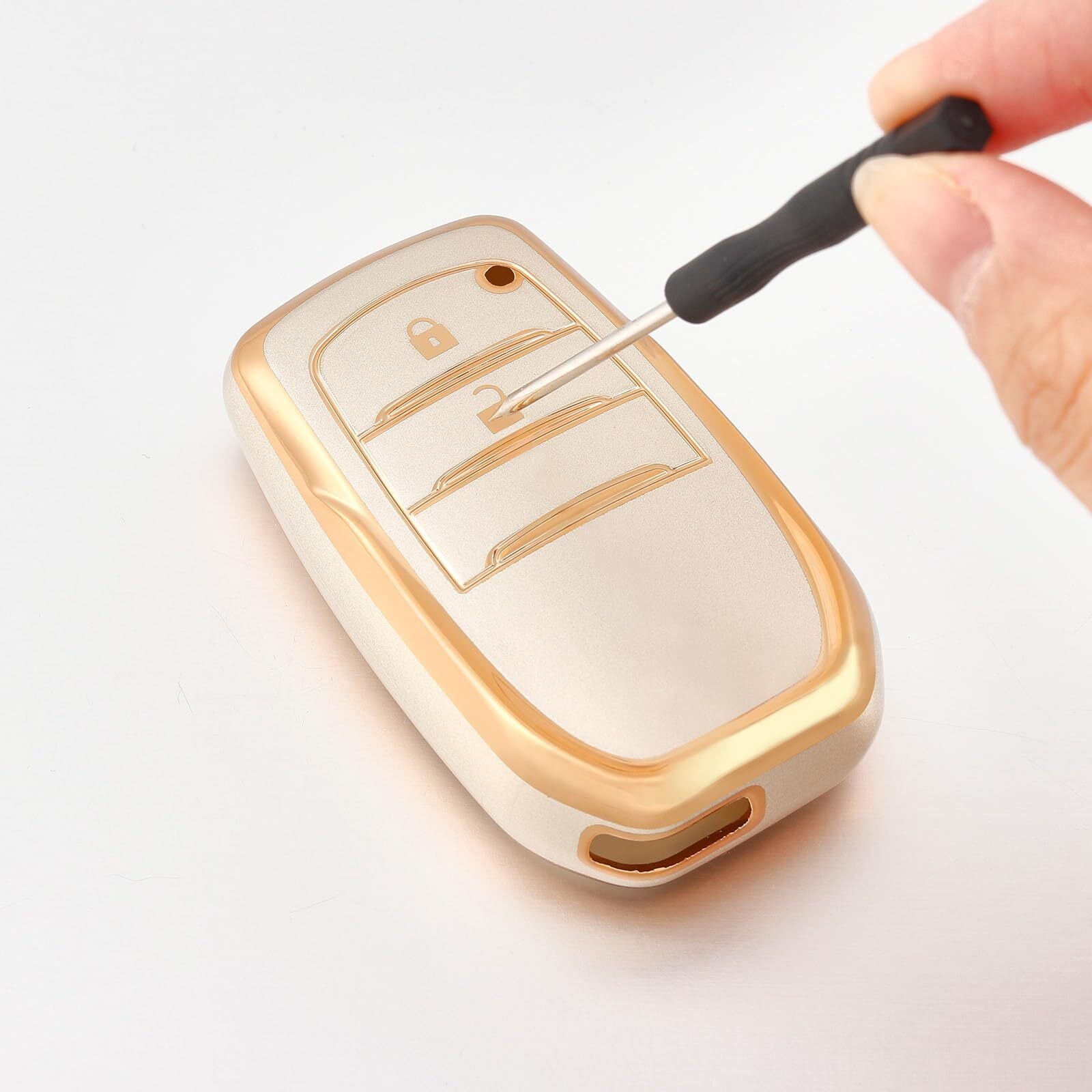 カラーオプション:このキーシェルはホワイトゴールド,ホワイトシルバー,ブラックゴールド,ブラックシルバー,ブルーゴールド,ブルーシルバー,ゴールド,シルバー。お好きな色を選んで、車のキーをエレガントなタッチにし、スタイルに合わせてキーをパーソナライズし。