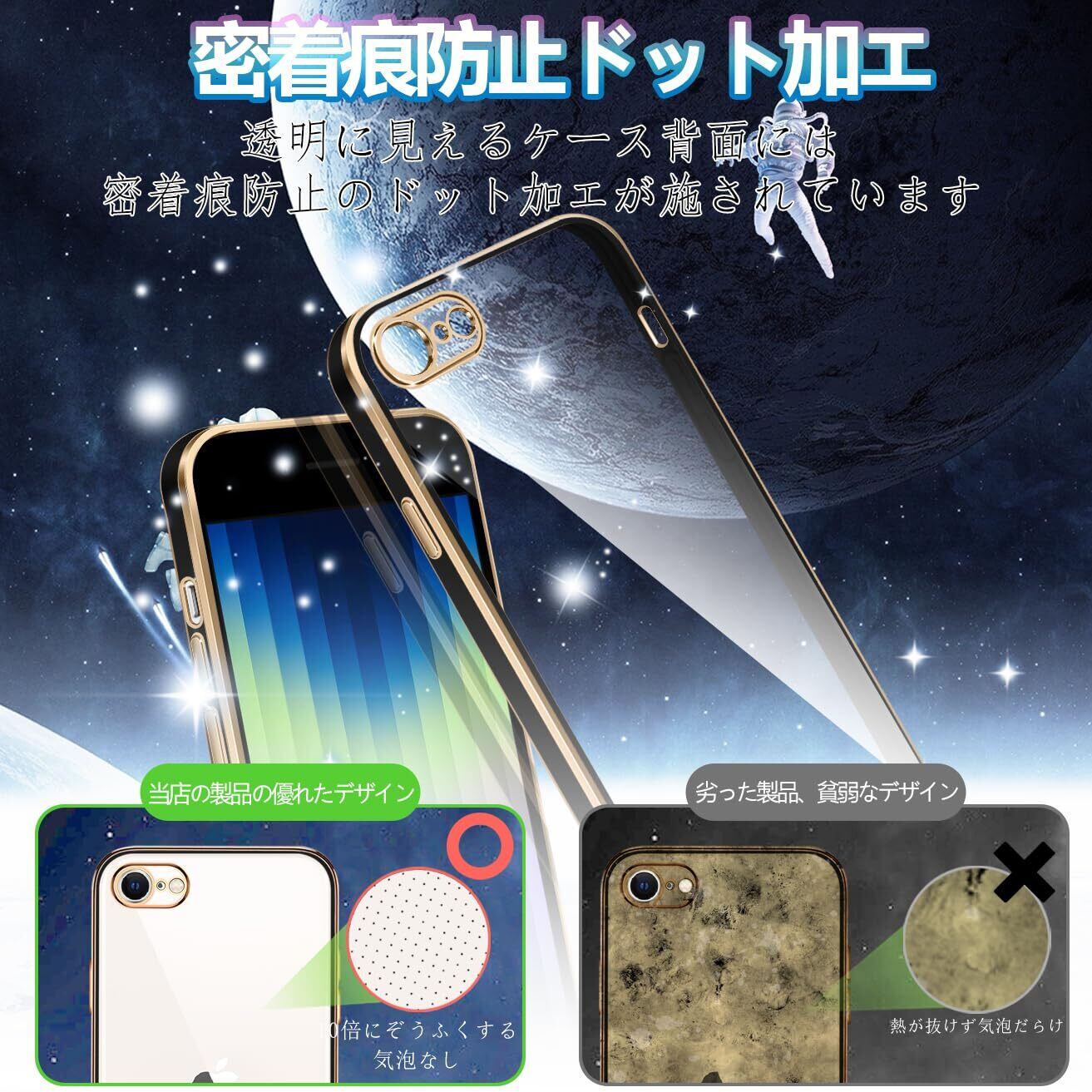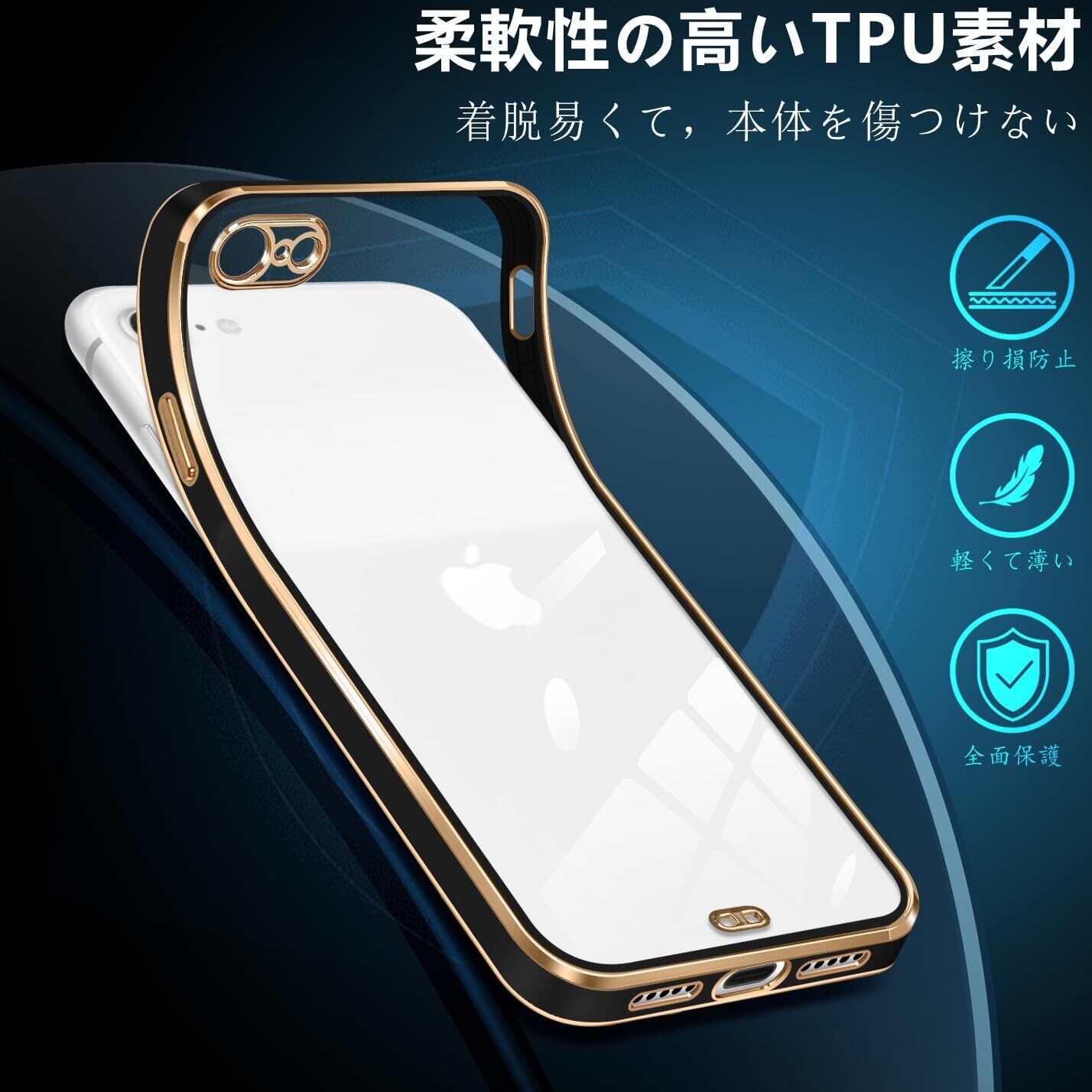 iPhone SE2 ケース クリア 第3世代 2022 アイフォンse3 iphne8 iphone7 可愛い かわいい 耐衝撃 TPU 薄型 軽量 メッキ加工 人気 ソフト レンズ保護 (ブラック)