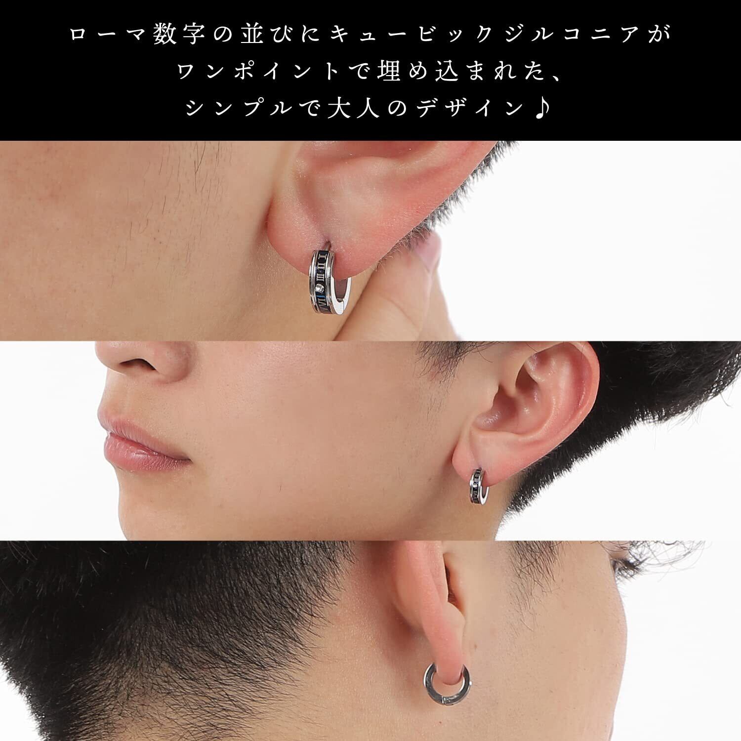 [アロハモニ] ローマ数字 ステンレス イヤリング フープピアス イヤーカフ フェイクピアス 両耳 2個セット フープ リング ノンホールピアス キュービックジルコニア メンズ レディース ユニセックス