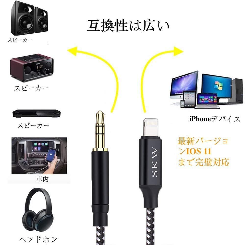【数量限定】SKW Lightning 3.5mm aux ケーブル[Apple MFi認証] iphone 変換 イヤホン HIFI音質 高耐久性ナイロン編み HIFI音質 Aux コード ヘッドフォン スピーカーなどに接続iPhone14 Plus/Pro iPhone13/iPhone12/iPhone11/iPhoneSE/iPhoneX/XR/8/8P/7/7Pに対応 /長さ1m/ブラック