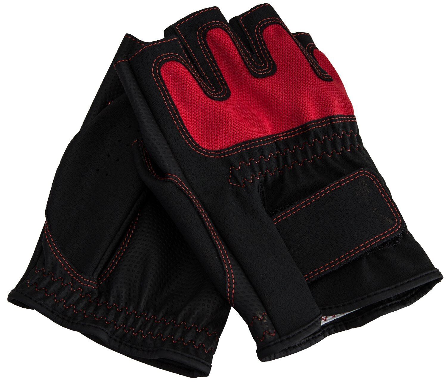 Lezax(レザックス) ドライブグローブ 半指合皮メッシュ すべり止め付き ブラック/レッド LZGL-6951