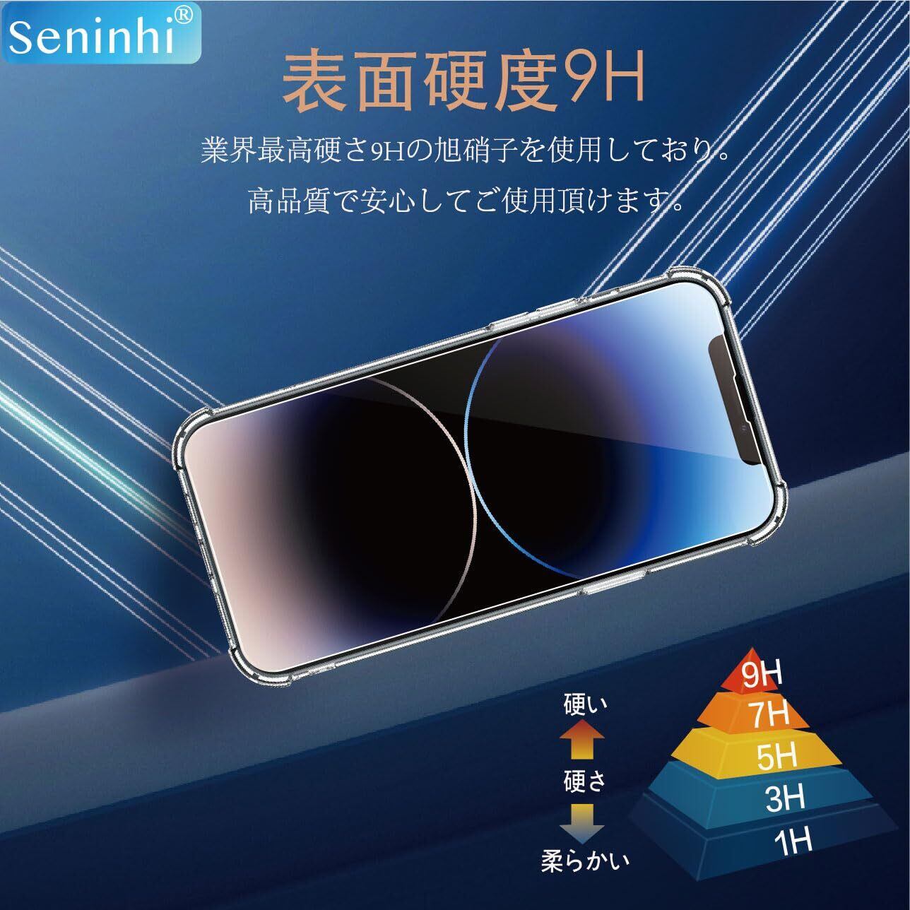 【硬さ9H・飛散防止】seninhi強化フィルムは業界最高硬さ9Hに達し、通常の強化フィルム硬さの5倍の耐衝撃性に達して、いきなりショックの力を与えされても携帯電話の画面を最大限に保護します。しかもフイルムエッジ部分を2重に補強して、普段に使う場合一番割れやすいエッジ部分がもっと頑丈になり、更にガラスフィルムが割れても飛散防止設計したので、ユーザー様にもっと安心できる使用環境を築いております。