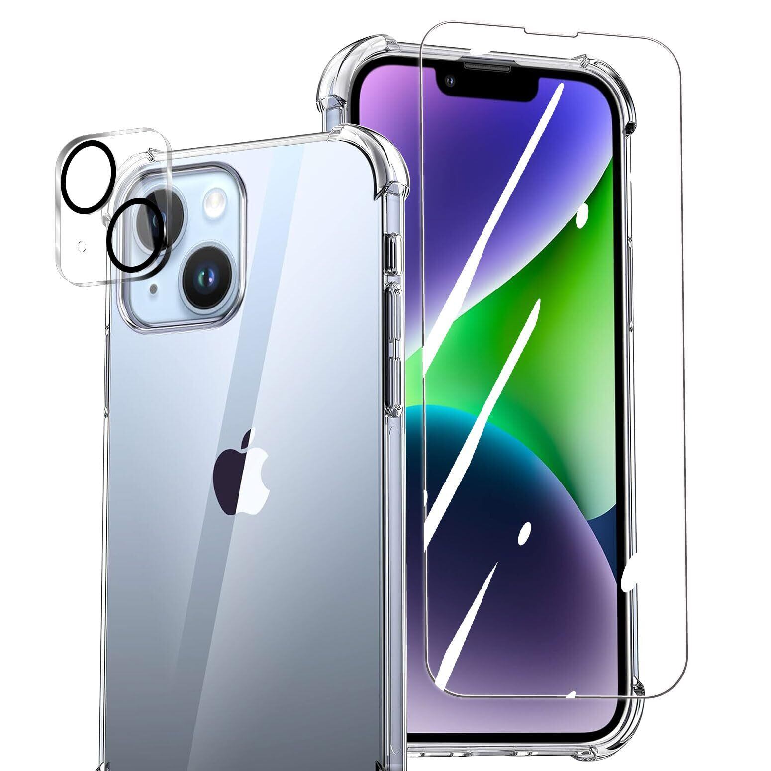 Seninhi 対応 iPhone 14 ケース 【1+1+1枚セット:ケース + ガラスフィルム + カメラフィルム】クリア TPU 米軍MIL規格 黄ばみ防止 散熱加工 高透過率 全面保護 9H硬度 耐衝撃 指紋防止 アイフォン 14 用 カバー 6.1インチ ガラス 保護フィルム レンズフィルム BS141K1J1KT