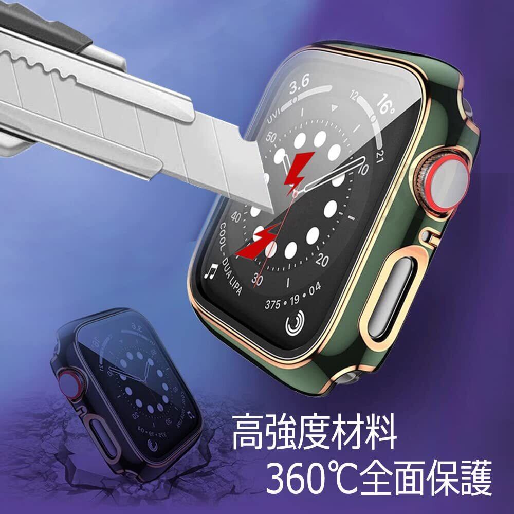 【在庫処分】アップルウォッチカバー ケース 38mm 40mm 41mm 42mm 44mm 45mm apple watch用 ガラスフィルム 一体型, Series 9 8 7 SE 6 5 4 3 2 全シリーズに適用 全面保護 ダイヤモンド付けとメッキゴールド襟二つ流行タイプ