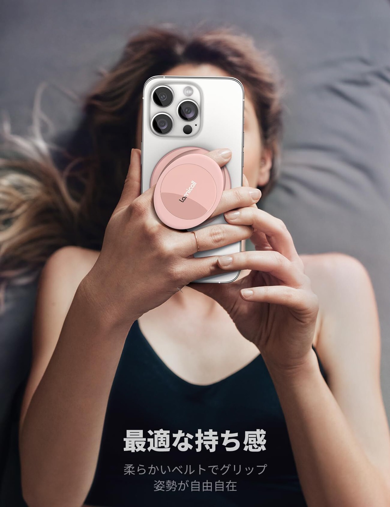 【指が痛くならない】 Lamicall マグネット式 スマホ リング ホルダー : マグセーフ バンカーリング Magsafe対応 りんぐ 携帯 柔らかいベルト グリップ アイフォン スタンド機能 強力 磁気増強 金属リング付き 取り外し iPhone 17 17 Pro Air 16e 16 Plus pro max 15 14 13 12 ミニ アンドロイド などに対応 ピンク
