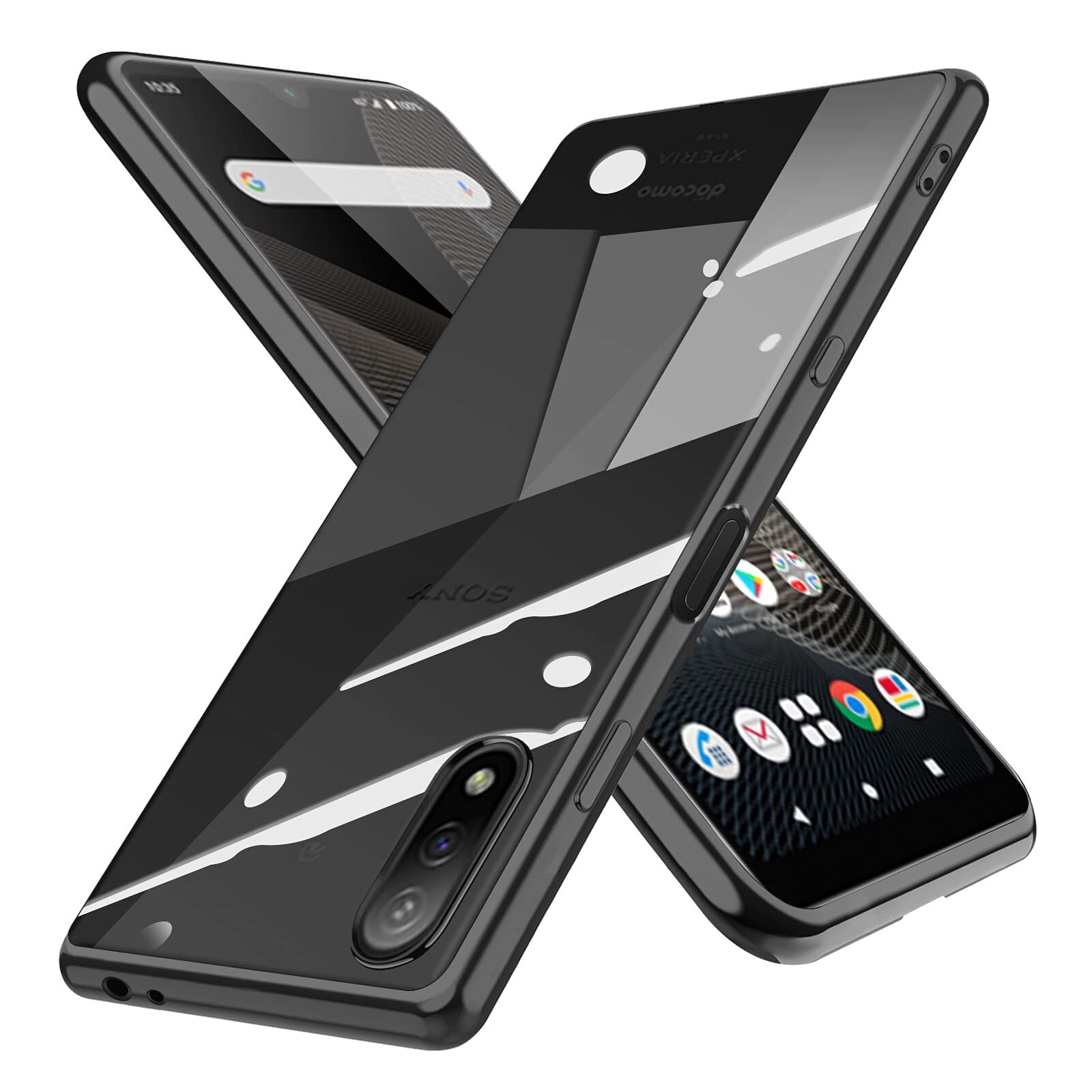 Xperia Ace II ケース クリア SO-41B スマホケース ソフトtpu 透明 背面クリア 黒 メッキ加工 エスクペリア Ace2 超軽量 耐衝撃 シリコン レンズ保護 ストラップホール付き カバー ブラック