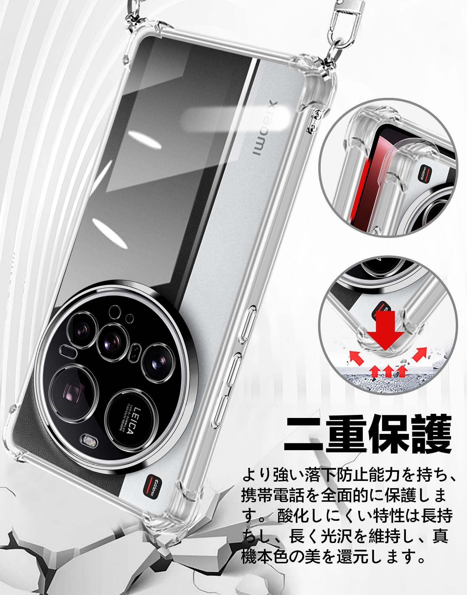 【特価商品】Xiaomi 15 Ultra ケース ショルダー クリア 耐衝撃 シャオミ 15 Ultra カバー スマホケース ストラップ付き 調節可能 肩掛け 斜めかけ 縄掛けケース 紐付き TPU 薄型 軽量 取り外し可能 落下防止【透明】