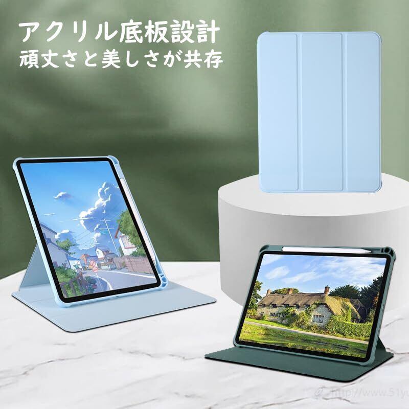 Ryo楽々生活館 iPad 9 8 7 10.2 インチ ケース アクリル ペンシル収納 画面回転可 スタンド オートスリープ ipad 第9世代 第8世代 第7世代 2021 2020 2019 保護 カバー アイパッド 9 8 7 保護ケース スカイブルー