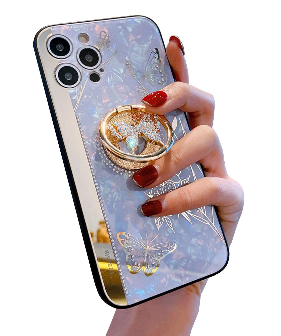 MuZiF iPhone XS Max 用 ケース 鏡として使える リング付き キラキラ かわいい バタフライ 軽量 薄型 耐衝撃 おしゃれ ストラップホール 携帯カバー アイフォンXS Max 用 カバー ケース(iPhone XS Max,パープル)