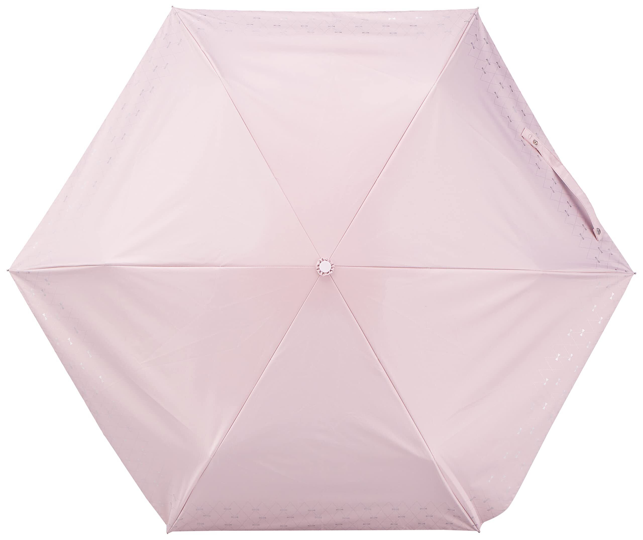 親骨の長さ:50㎝ 全長:約28㎝ 広げたサイズ:約91㎝ 重さ:約250g スリムで軽量な折りたたみ傘。内側に施されたパールコーティングでキラキラ感を演出。コスメ感のある日傘です。