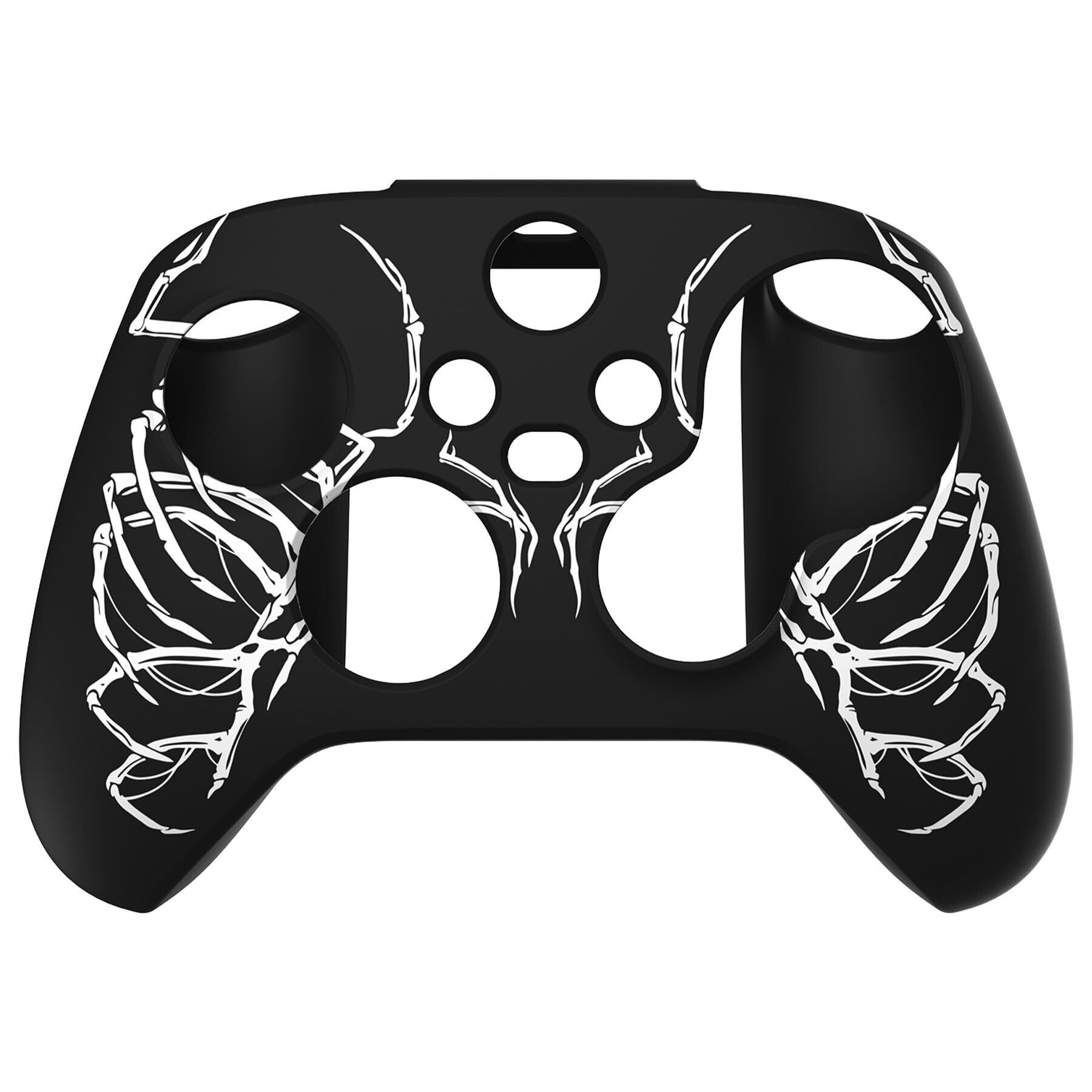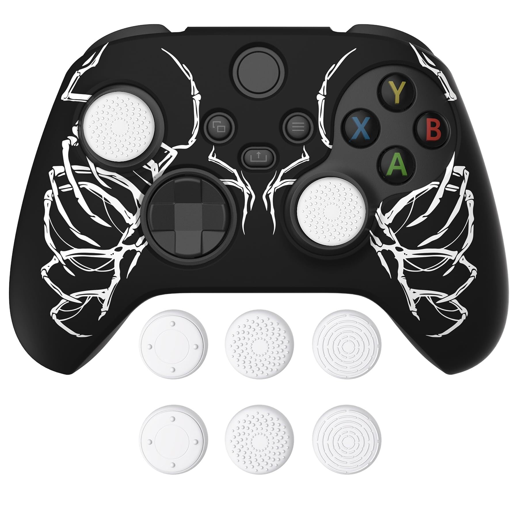 PlayVital Pure Xbox Series Xコントローラーに対応用アンチスリップシリコーンカバースキン、黒い親指グリップキャップ付き、Xbox Coreワイヤレスコントローラ対応用ソフトラバーケースプロテクター【ブラック&ホワイト(カービングスカル)】