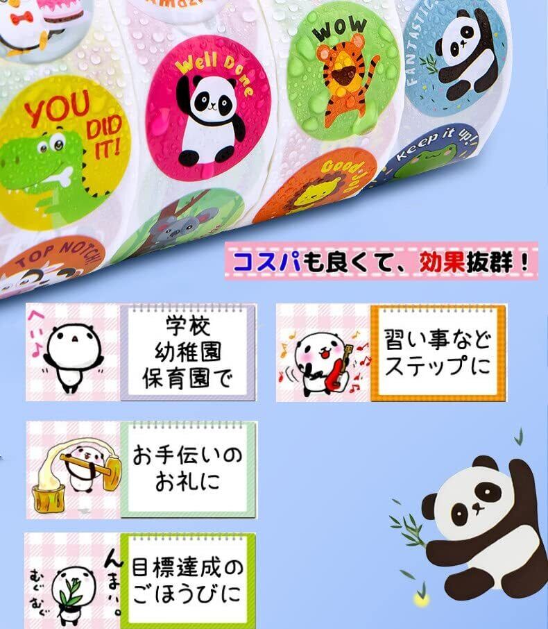 【ごほうびシール - 大容量】2500枚で、学校・塾・幼稚園・お稽古・保育園などの枚数が必要なシーンにおすすめ。