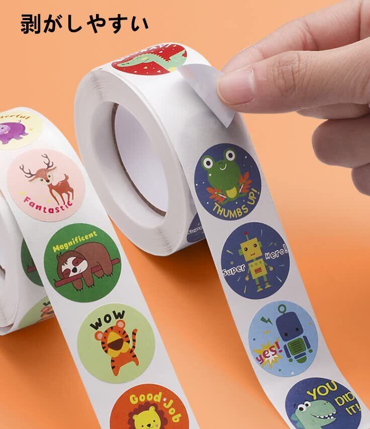 【ごほうびシール - 豊富な絵柄】40種類の美しいデザインで楽しくお使いいただけます。丸型カットで貼りやすく剥がしやすいため、小さなお子様の指でも簡単に扱えます。
