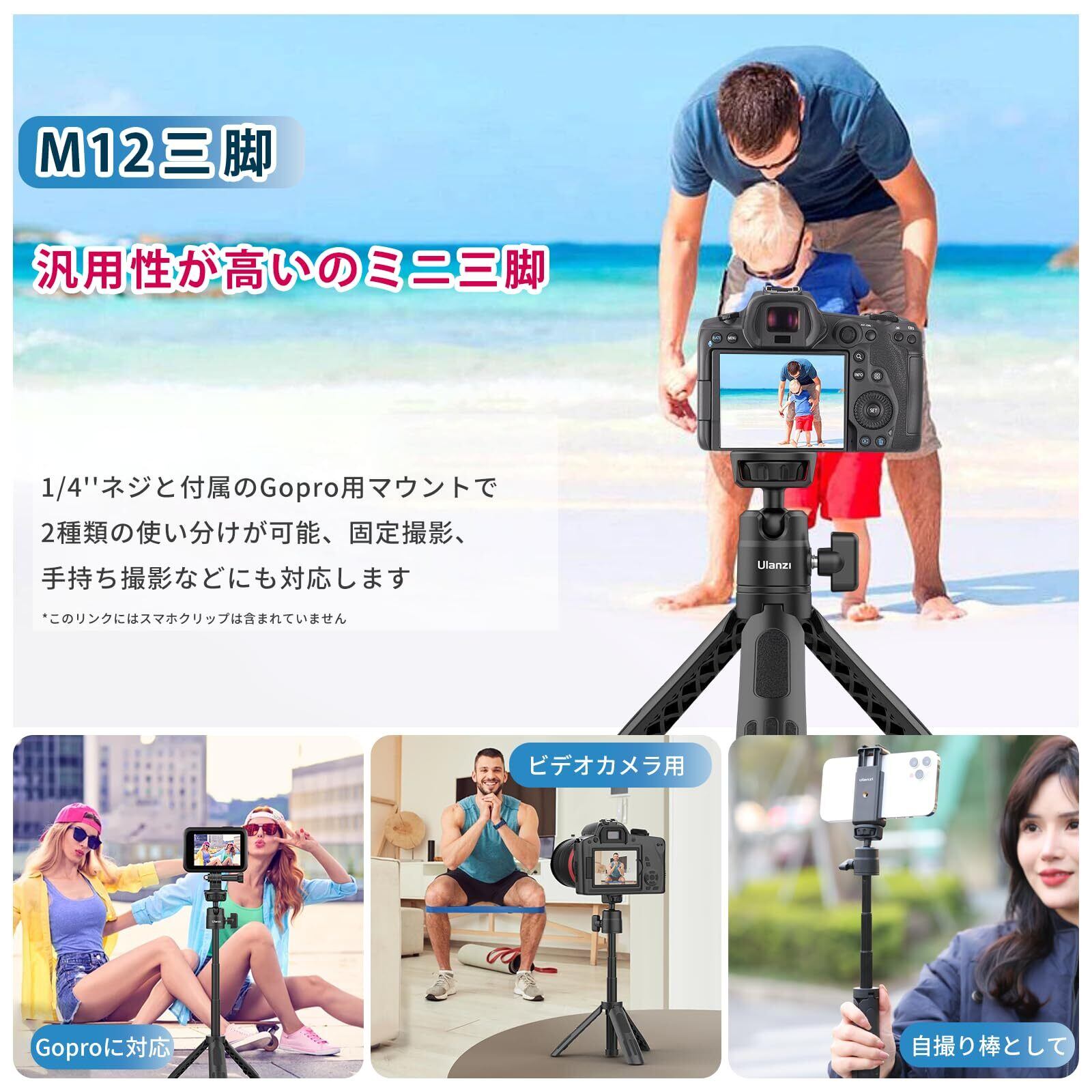 【人気商品】Ulanzi M12 ミニ三脚 カメラ三脚 3段伸縮 自撮り棒 卓上三脚 Gopro用マウント付き 360度回転 自由雲台 1/4ネジ穴 持ち運び便利 vlog ビデオ セルカ棒 折りたたみ GoPro用/Sony用/OsmoPocket用/Canon用/Nikon用/Android/iPhone用/アクションカメラなどに対応 | わくわくSHOP