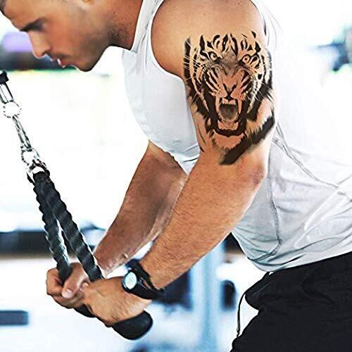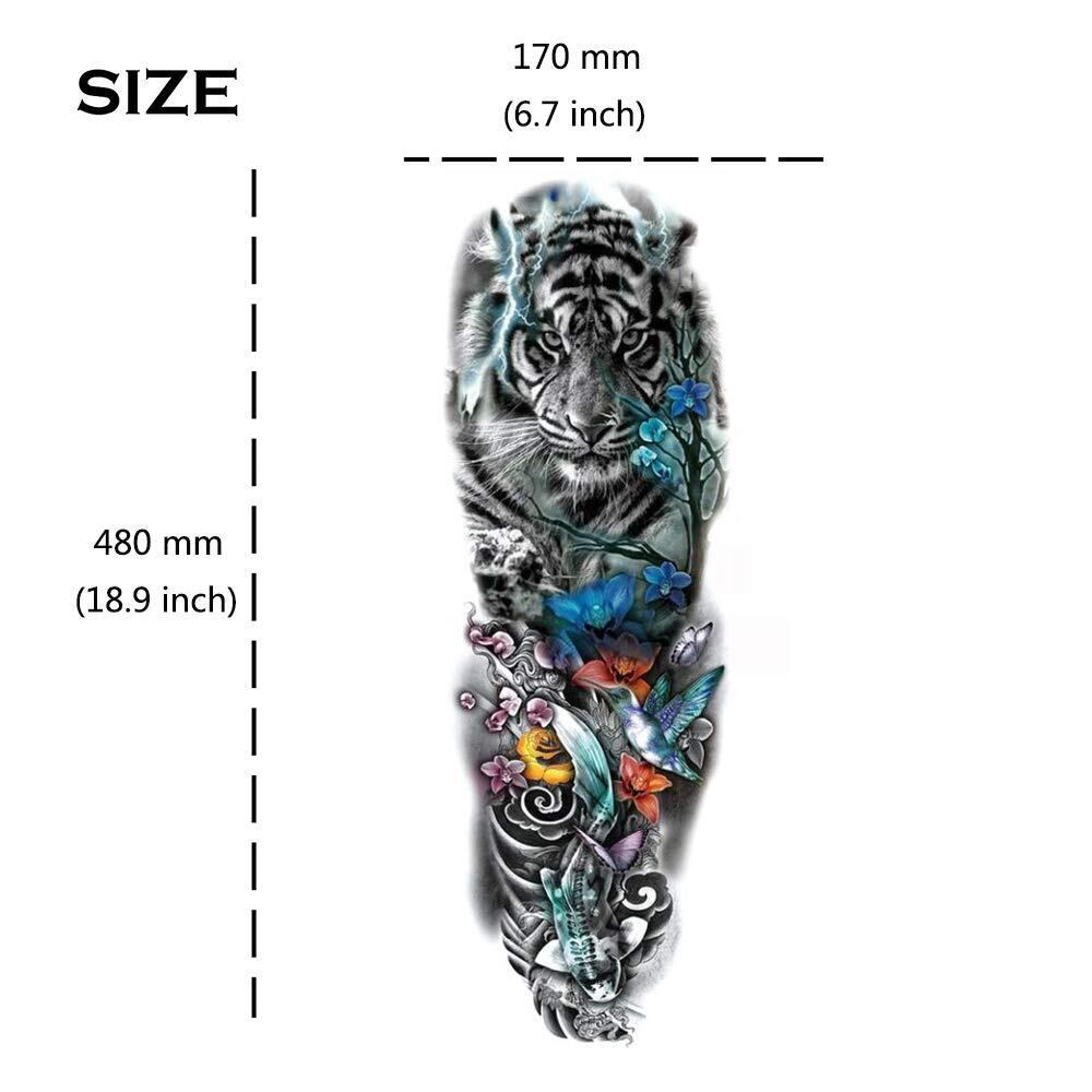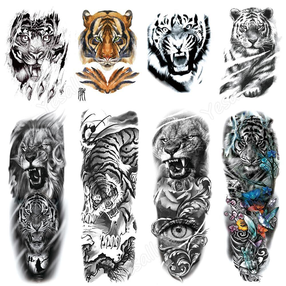 Yesallwas タトゥーシール 特大そっくり 肩から手首メンズ レディース用 4枚セット(17x48CM)とボディーシール入れ墨 4枚(21x10cm)ライオン、虎 防水長持ち 刺青シール TATTOO 仮装小道具 コスプレ小物 花火大会 文化祭 学园祭用