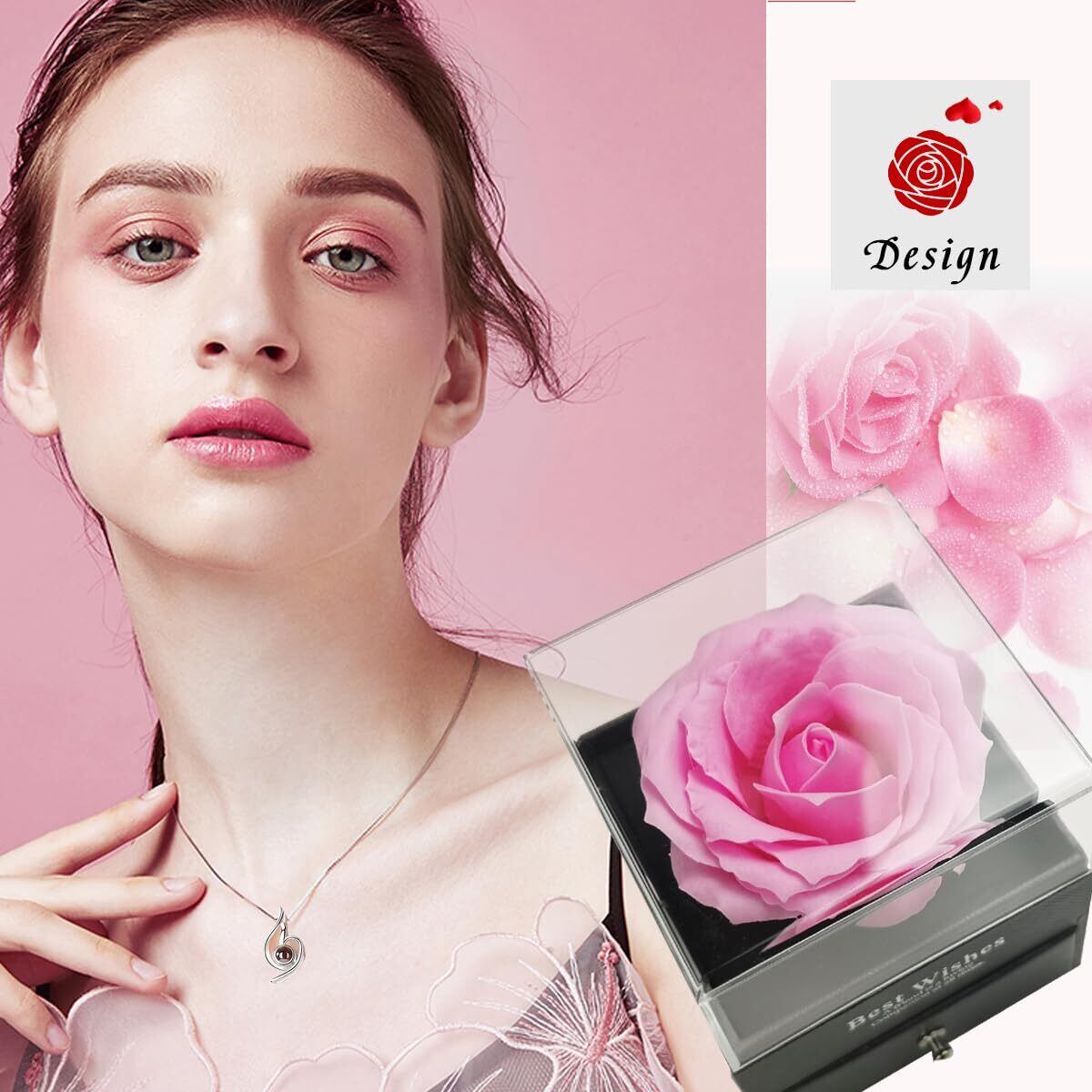 【新着商品】[Laluna] ソープフラワー プレゼント 人気 造花 バラ 一輪の花 創作ジュエリー石鹸花のローズボックスのギフトセット シルバー925 ネックレス レディース付き シルバー925アクセサリー 妻、彼女、女性向けの誕生日、記念日、結婚記念日、ホワイトデー、バレンタインデーのギフト クリスマス、プロポーズ、バレンタインデーの贈り物 母の日 (ピンクばら)