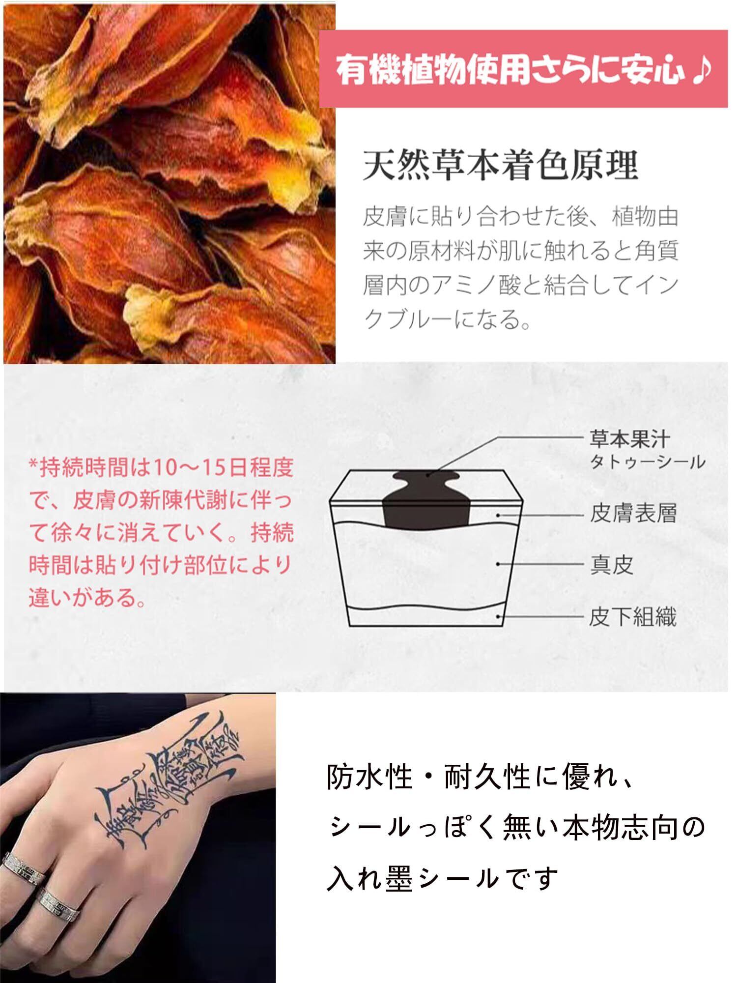 【耐防水】防水性・耐久性に優れ、シールっぽく無い本物志向の入れ墨シールです。