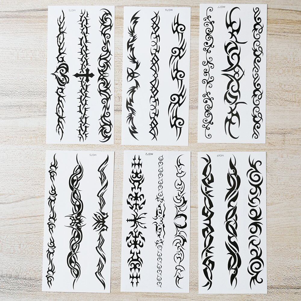 Yesallwas タトゥーシール トライバル 鎖 6枚セット ブレスレット タトゥー タトゥーステッカー ボディーシール メンズ レディース 刺青シール 防水 腕、足、体、胸、肩、背中に簡単貼る tattoo 9X19CM (M)