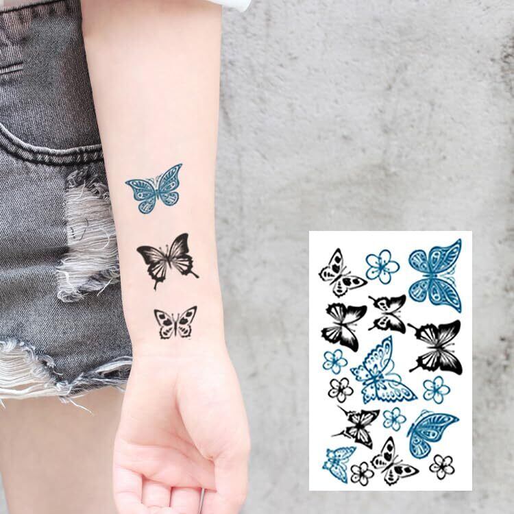 【新春セール】Yesallwas タトゥーシール 蝶 黒 長持ち 9枚セット 入れ墨シール 蝶々 刺青シール バタフライ タトゥーステッカー ボディーシール 防水 子供 レディース TATTOO | わくわくSHOP