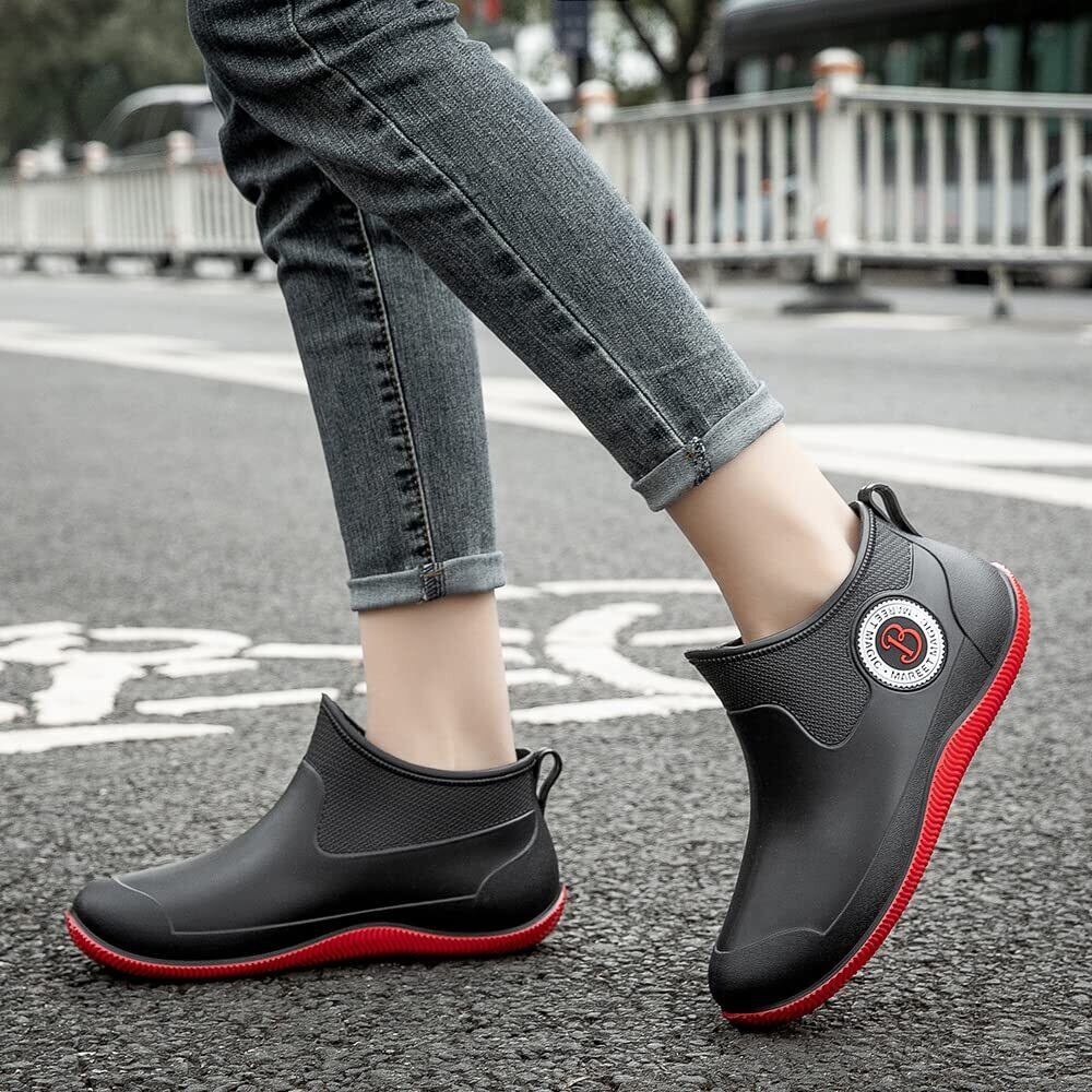 【快適でカッコいい】伝統な雨靴のイメージを一転し、雨の日に使うだけではなく、晴れた日に履いてもオシャレなレインブーツです。帰宅時に雨がやんでいても違和感なく使える晴雨兼用デザインとなっております。柔軟性のある天然ゴムを採用し屈曲性に優れ、防水性も抜群で、長時間履いても快適な履き心地を実現します。
