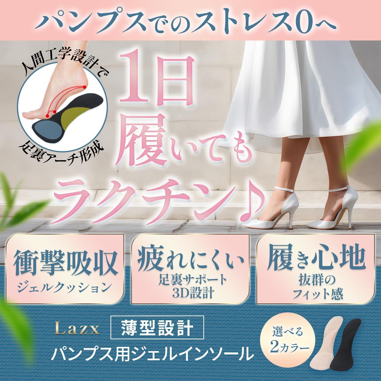 【9つの足裏サポート設計】 パンプス インソール 土踏まず アーチサポート 衝撃吸収 立ち仕事 靴 中敷き レディース Lazx (ブラック)
