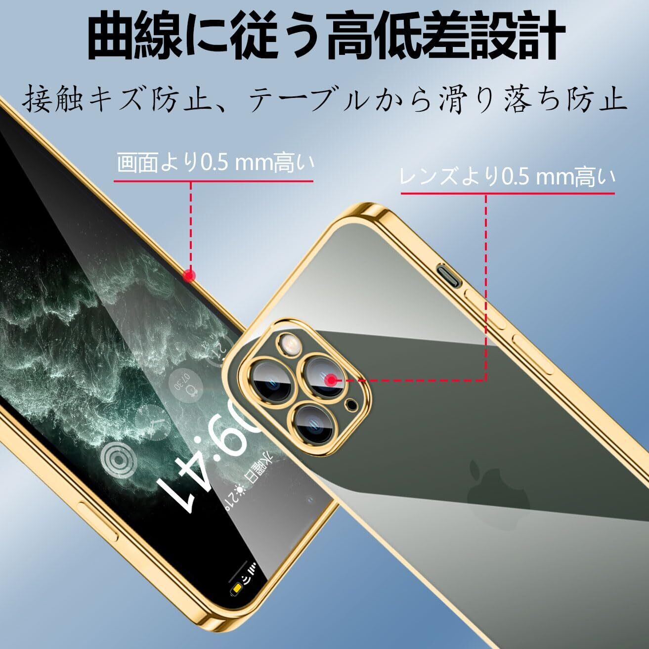 iPhone11 Pro Max ケース クリア カメラ保護 いphone11 Pro Max スマホケース 薄型 TPU 軽量 変形防止 人気 スリム ソフト アイフォン 11 Pro Max カバー 衝撃吸収 ストラップホール付き(ゴールド)