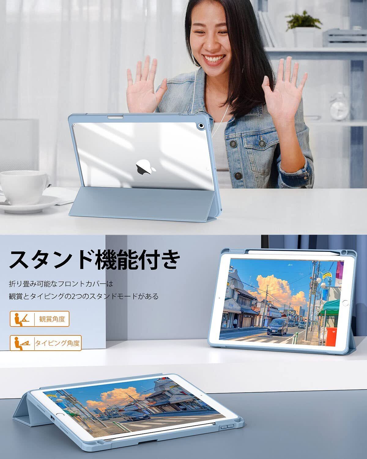 【在庫セール】KenKe iPad 9世代 ケース 10.2 インチ 第9/8 /7世代 2021 2020 2019 iPad ケース 透明バックカバー ペン収納 三つ折スタンド オートスリープ機能 全面保護型 軽量 薄型 傷つけ防止 PU合成レザー TPU (モデル番号A2602、A2603、A2604、A2605) スカイブルー | わくわくSHOP
