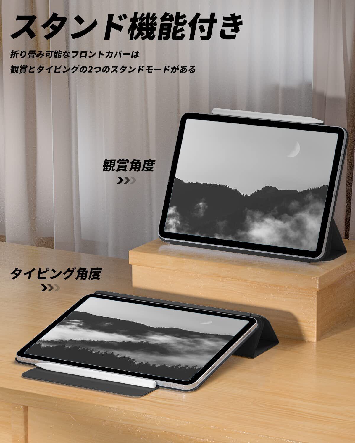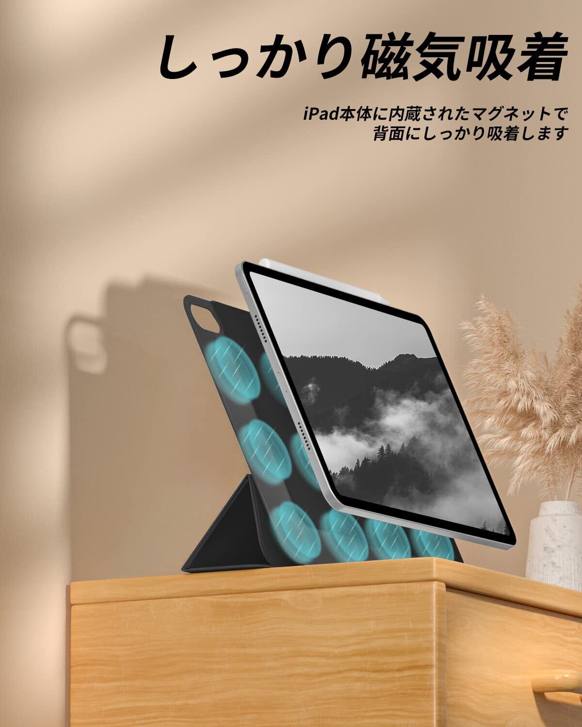 【磁気吸着】強力な磁石を搭載しており、瞬時にiPadに収着し、デバイスの前面と背面をしっかり守ります、側面のバックルはあなたのiPadをより安全に保ちます。従来のエッジを取り除くだけでなく、体を薄くて軽く保ちます。