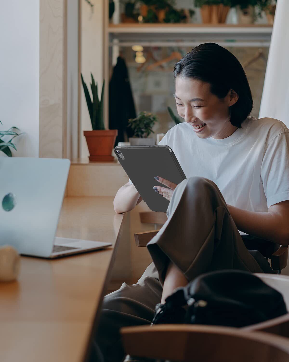【三つ折り・スタンド機能】三つ折りフロントカバーにより、横向きに立てかけて、動画視聴、読書、WEBなどに便利です。