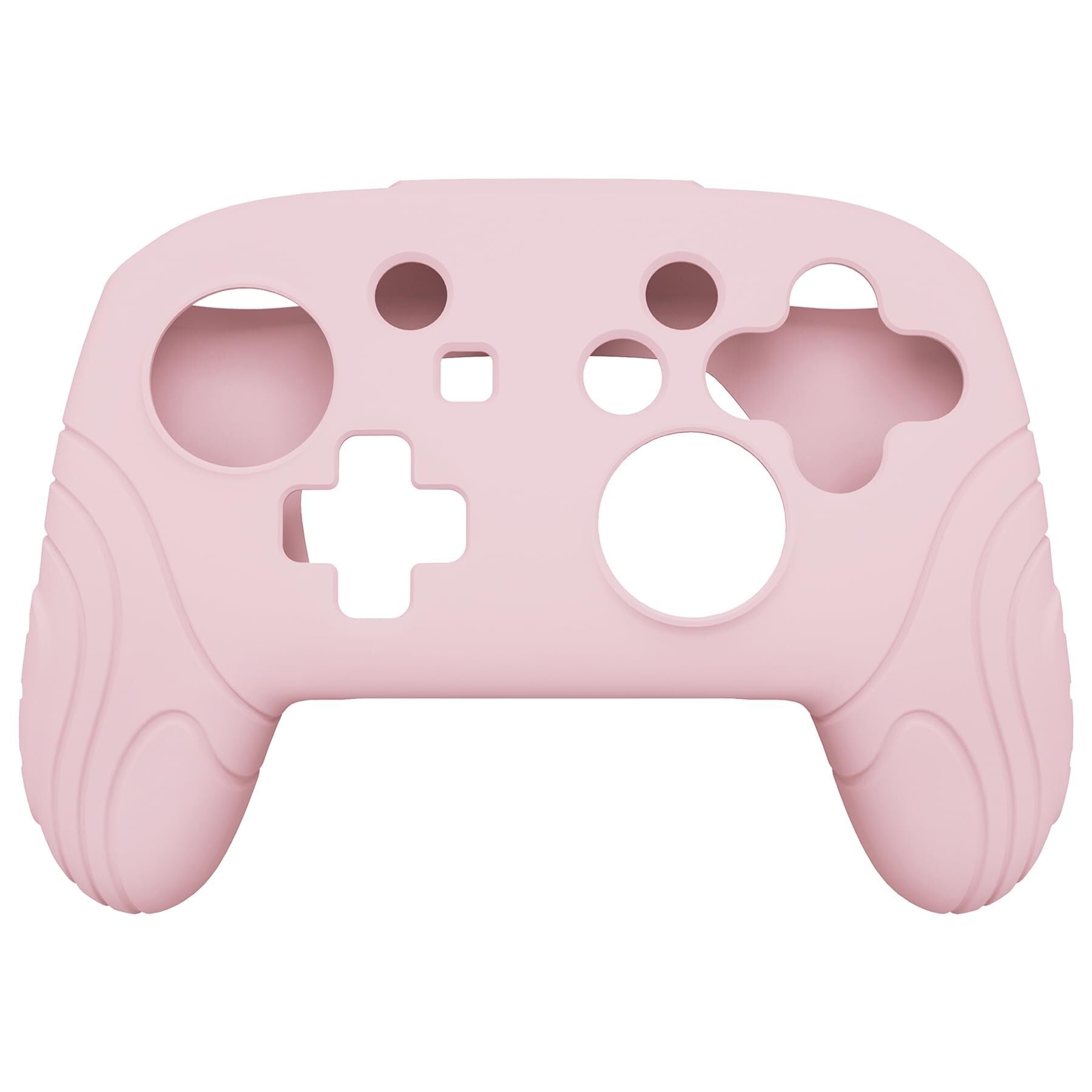 PlayVital Switch Proコントローラーに対応用人間工学に基づいた滑り止めシリコンカバーケース、スイッチプロコン用ソフトラバープロテクタースキン、サムグリップキャップ付き【サムライエディション-サクラピンク色】
