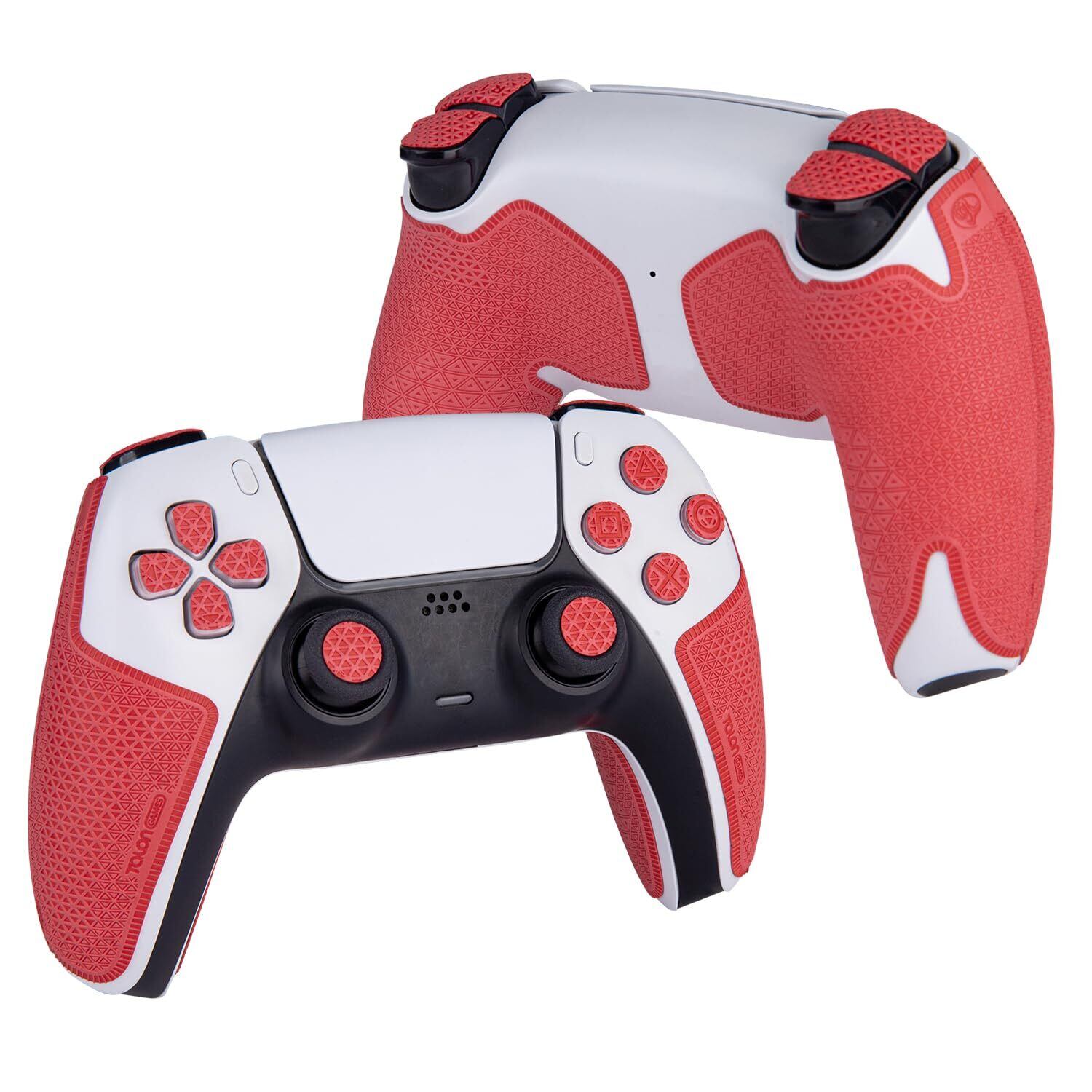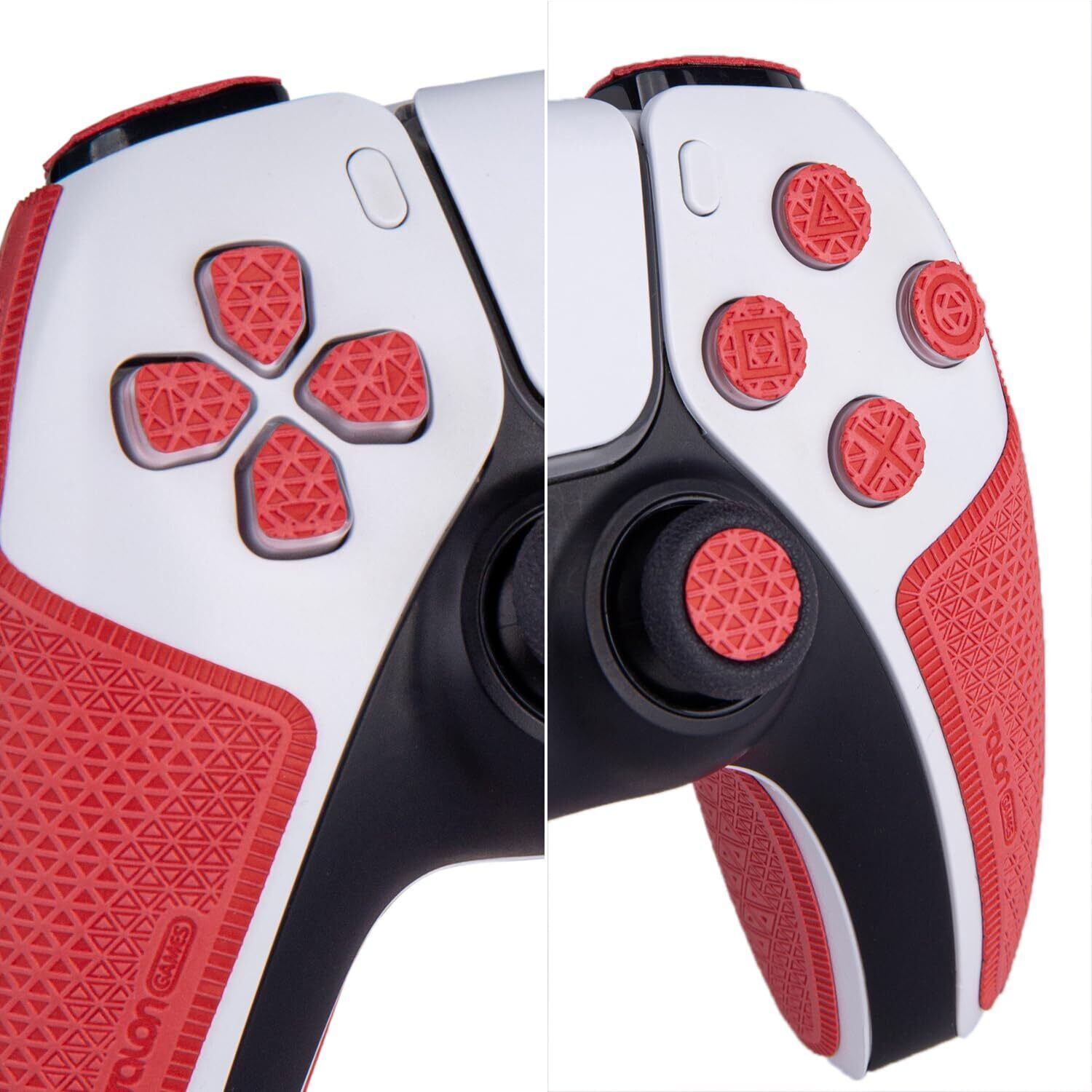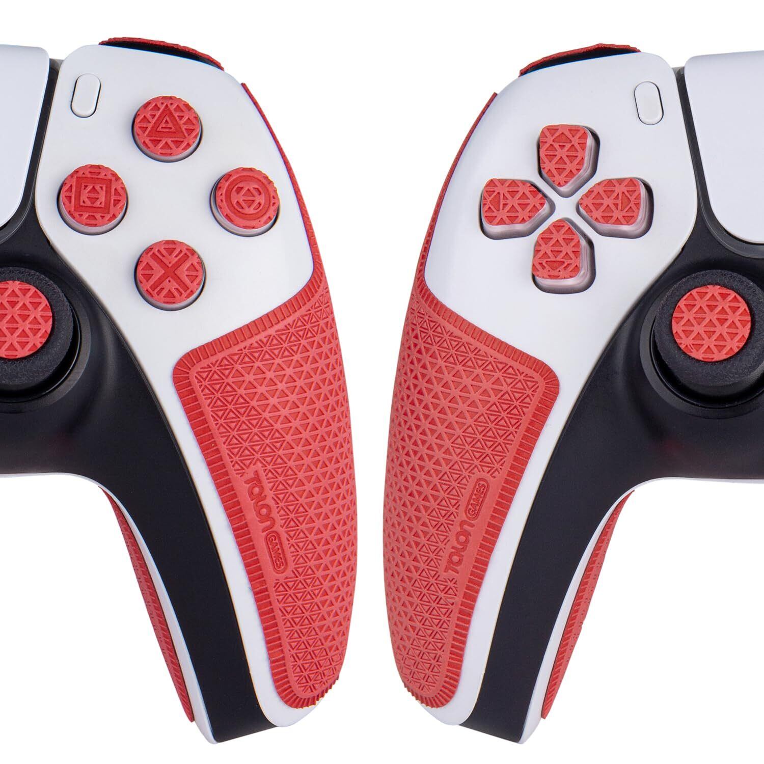 【 グリップ力強化 & 吸汗力強 & ボタン図形付き 】 TALONGAMES PS5 デュアルセンス 用 コントローラーグリップ Ultraバージョン アンチスリップテープ PlayStation 5 DualSense 滑り止め グリップ テープ 滑り止め グリップシール カット済 1セット入り [ グリップ部分 + 十字キーパッド + ボタン + トリガー ](レッド)