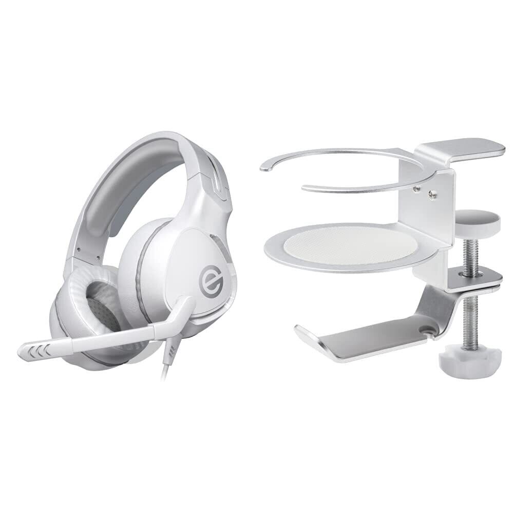 【ヘッドホンスタンドセット】エレコム ゲーミングヘッドセット PS5 PS4 Switch SwitchLite マイク付き 有線 3.5mm コントローラー付属 軽量 両耳オーバーヘッド 50mmドライバ 4極 ホワイト HS-G01WH