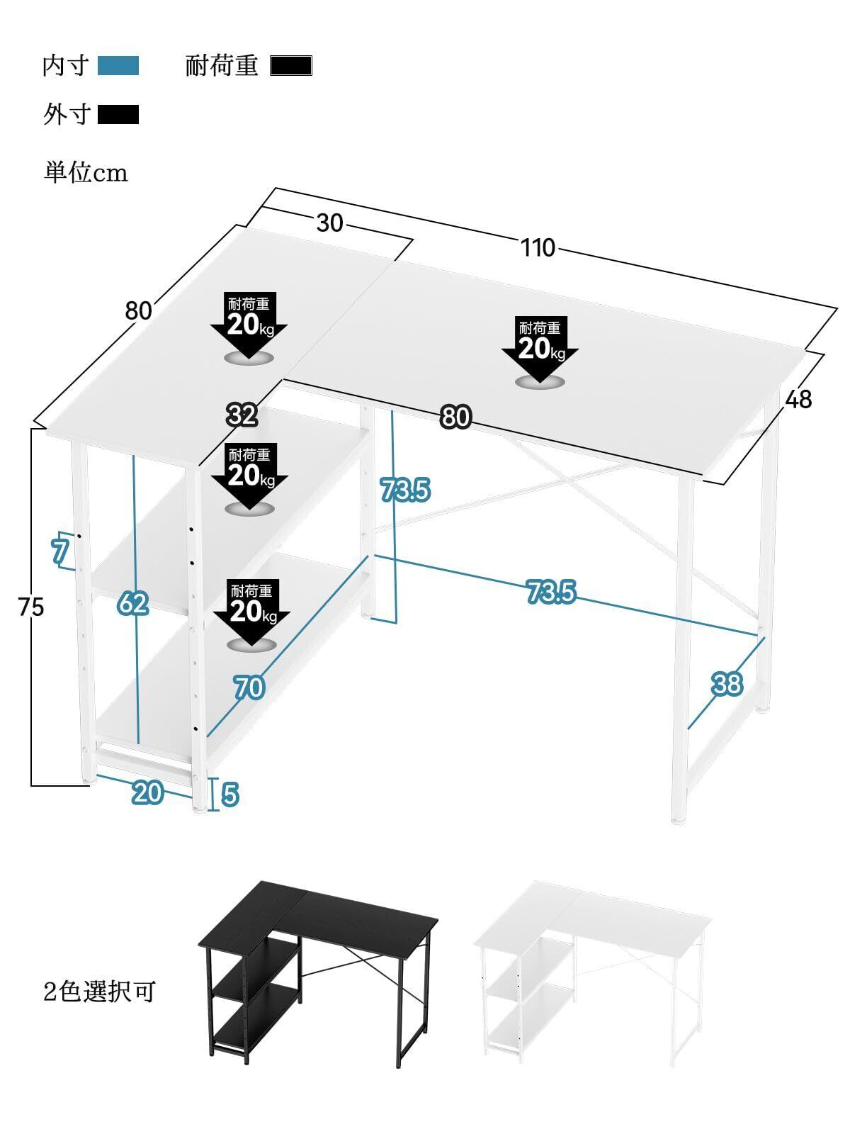 シンプルで広々使える天板:幅110cmのL字型天板でノートパソコンとプリンターを一緒に置いても広々していて快適にデスクワークができます。在宅ワークデスクとしてはもちろん、ゲーミングデスクとしても使用できるおしゃれなl字デスク。また、奥行きが最大80cmの天板にすることで、作業に必要なものはすぐ手の届く範囲に置ける、作業も効率的に行えます。天板は傷・水分・汚れ・熱に強くさっと拭くだけで綺麗に!机下の高さはゆったり75cm。足元も広いので開放感があり、ゆったりと座って頂ける快適デスクとなっております。