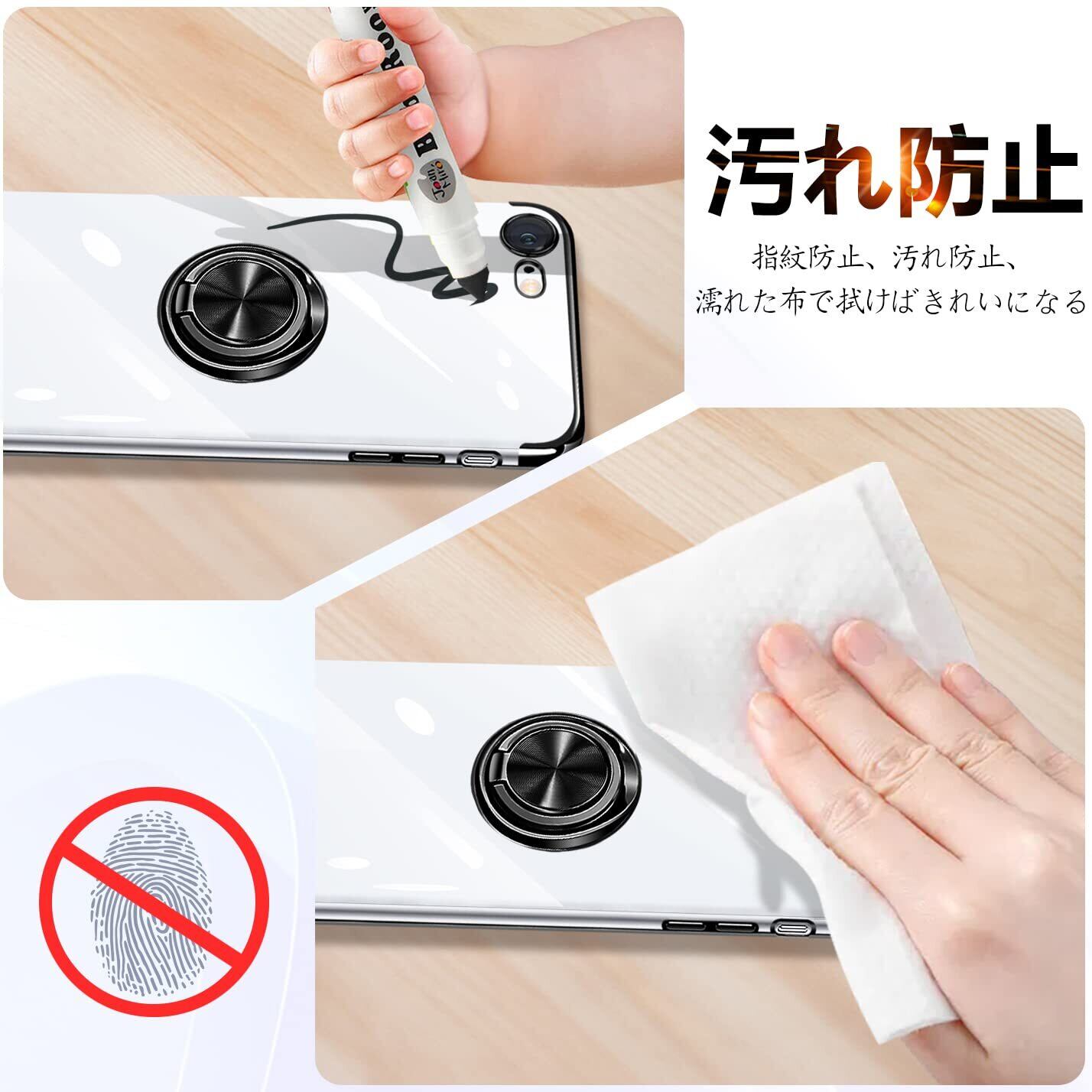 iPhone SE3 / SE2 / 8 / 7 ケース クリア リング アイフォン SE 第3世代 第2世代 カバー リング付き 耐衝撃 透明 薄型 スリム TPU ソフト シリコン スタンド機能付き 360回転 車載ホルダー対応 (ブラック)