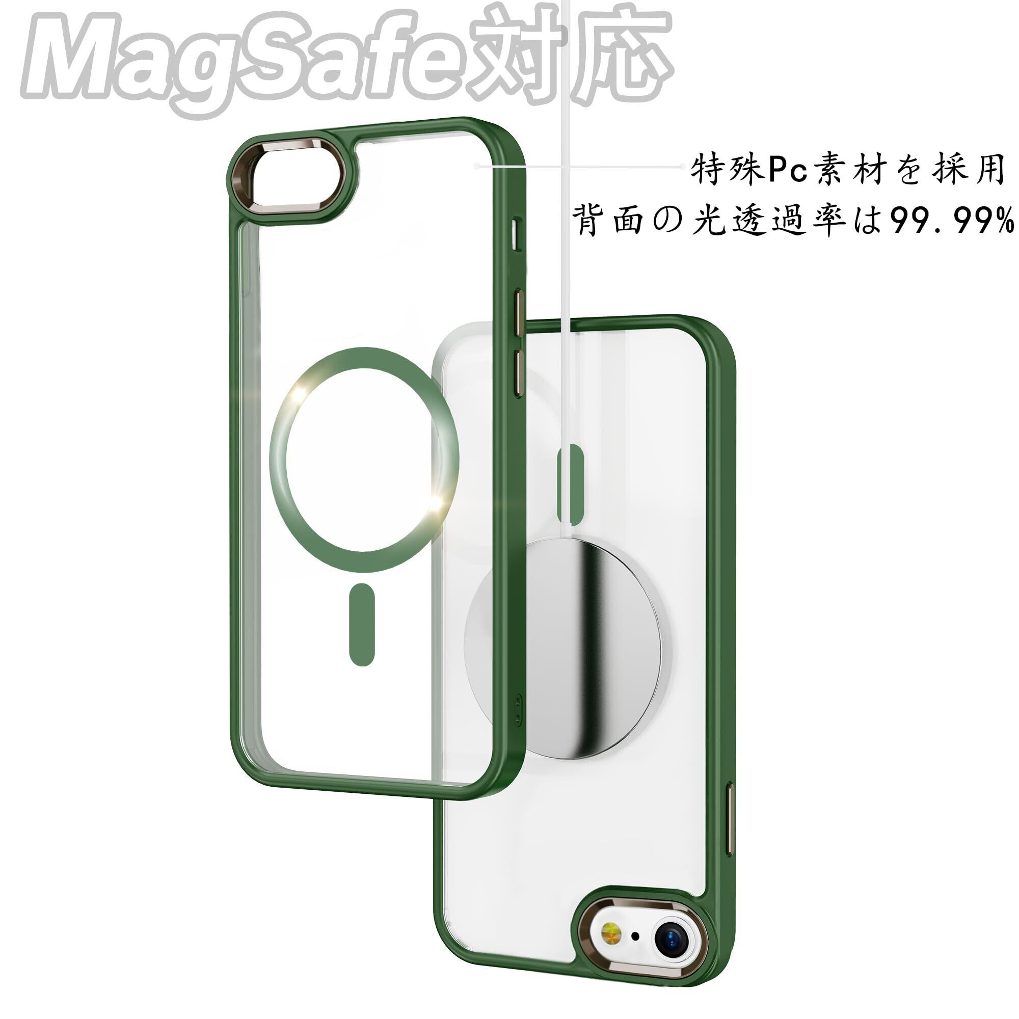 iPhone SE3/SE2 ケース 第3世代 MagSafe対応 背面クリア 2022 第2世代 iPhone 7/8 ケース 耐衝撃 TPU バンパー ワイアレス充電対応 PinLiSheng,Green