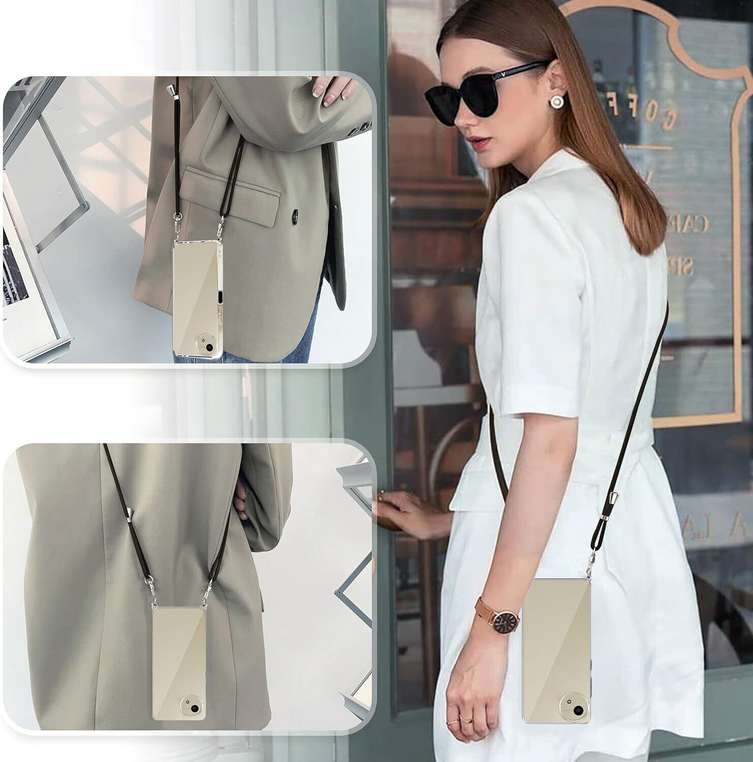 【便利で実用・縄掛けケース】ショルダーストラップ付き、取り付けや長さ調整が非常に簡単。特にポケットのない服が多いので、外出時に肩にかけるととても便利です。ショルダーストラップは取り外し可能なので、それを使わなくても簡易的なスマホケースとして使用することができます。外出、登山、買い物、自撮り、電車内の時など日常生活からできるスマホ紛失・落下防止できるスマホネックストラップリングで両手を自由にし楽な日常ができます。