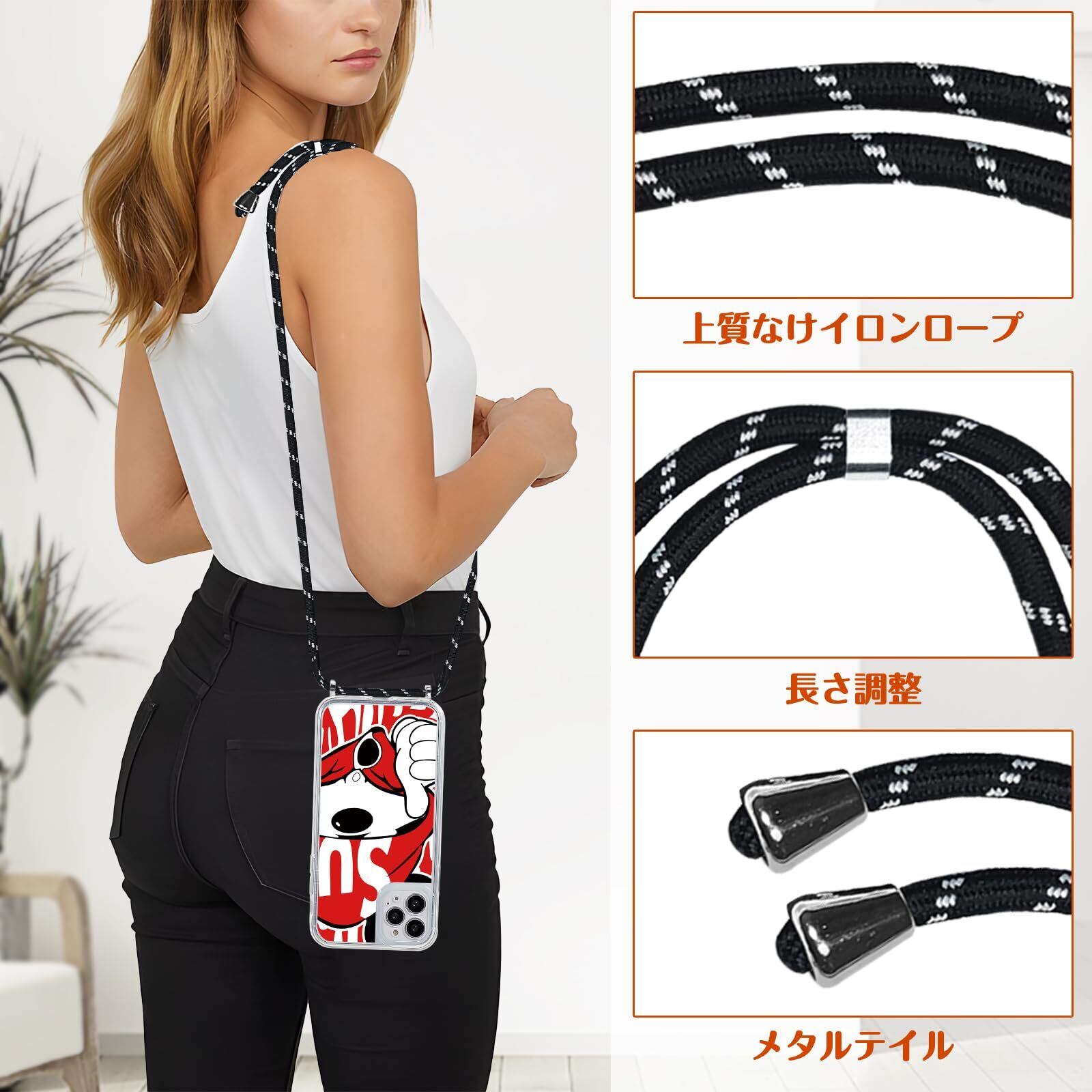 iPhone 15 Pro max 用 ケース クリア ショルダー iPhone 15 Pro max スマホケース アイフォン15 Pro max カバー 肩掛け 斜めかけ 縄掛け 透明 薄型 軽量 TPU 携帯ケース 紐付き 斜めがけ 織りストラップ付き ネックストラップ ショルダー カバー 長さ調整可能 落下防止 紛失防止