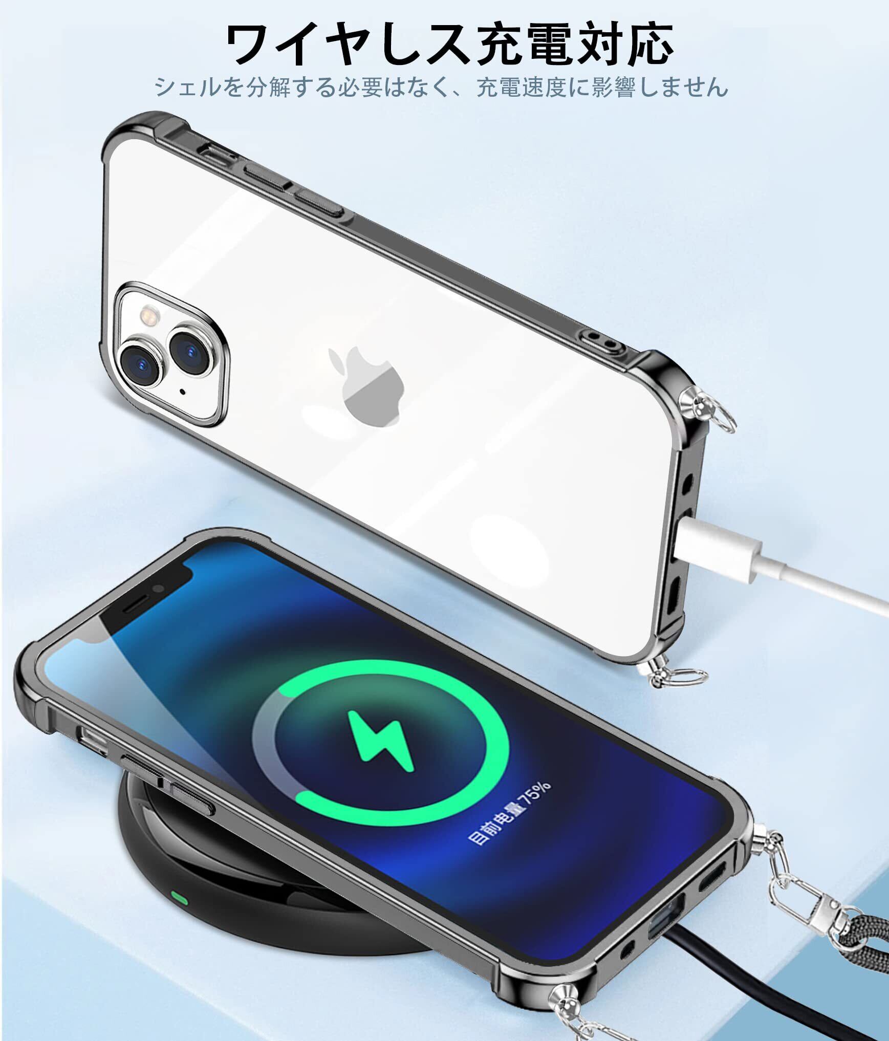 weiaoluo iphone 15 ケース クリア ショルダー 耐衝撃 iphone 15 スマホケース アイフォン15 バンパー 携帯カバー 斜めがけ 薄型 TPU 軽量 肩がけ 首掛け 紐付き ストラップ付き ストラップホール付き 韓国 透明 ストラップ着脱可 調節 Qi充電 ワイヤレス充電 全面保護 落下防止 すり傷防止 カメラ保護(ブラック)